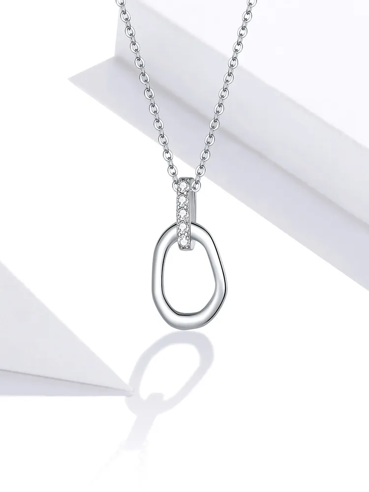 Fashion S925 Sterling Silver Geometric Double Ring Necklace, Simple And Advanced Sense Of Platinum Plated Clavicle Chain