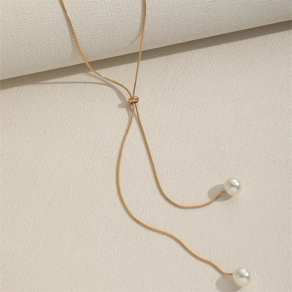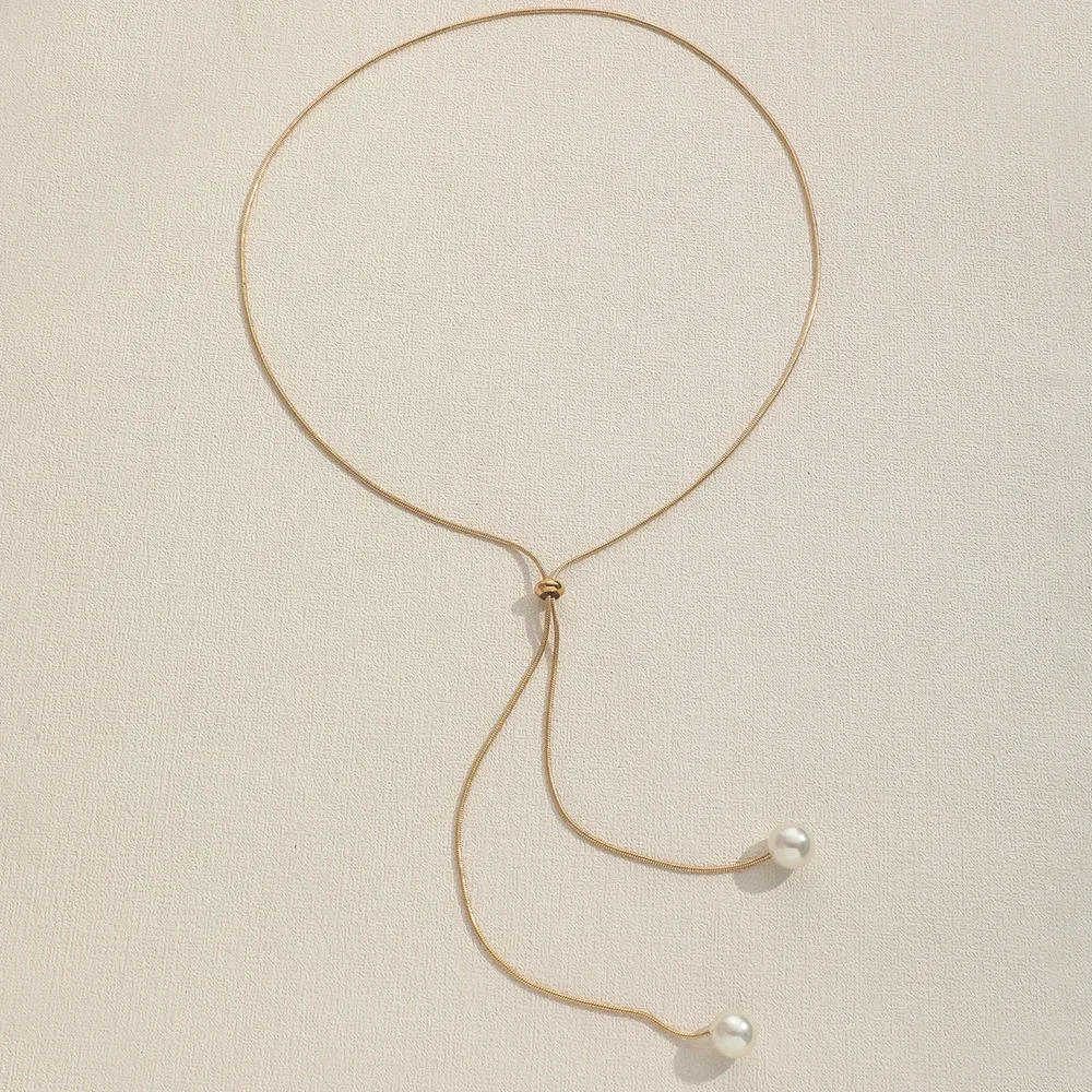 The Fashion Simple Gold Color Pearl Tassel Necklace is a stunning blend of elegance and minimalism, designed to elevate any outfit. Featuring a gold-tone chain paired with a delicate pearl accent and a long tassel pull design, this clavicle chain necklace is perfect for women who value timeless yet contemporary jewelry. The unique pull design allows for adjustable length, making it versatile and suitable for both casual wear and formal occasions.