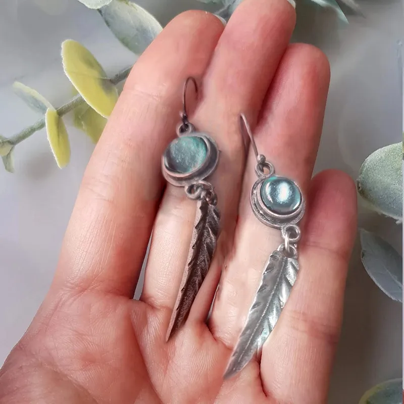 Fashion Simple Opal Feather Pendant Earrings – A Touch of Elegance and Serenity