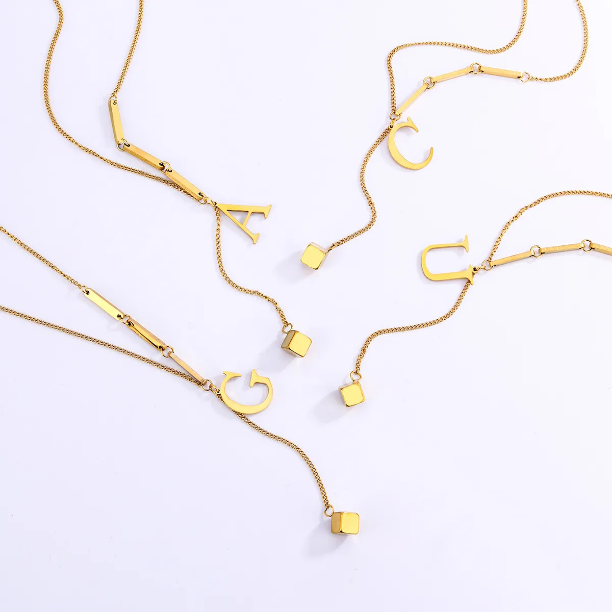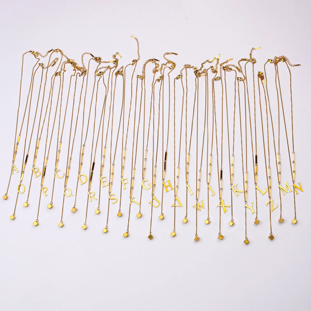 Fashion Simple Titanium Steel Tassel 26 Letters Square Pendant Necklac