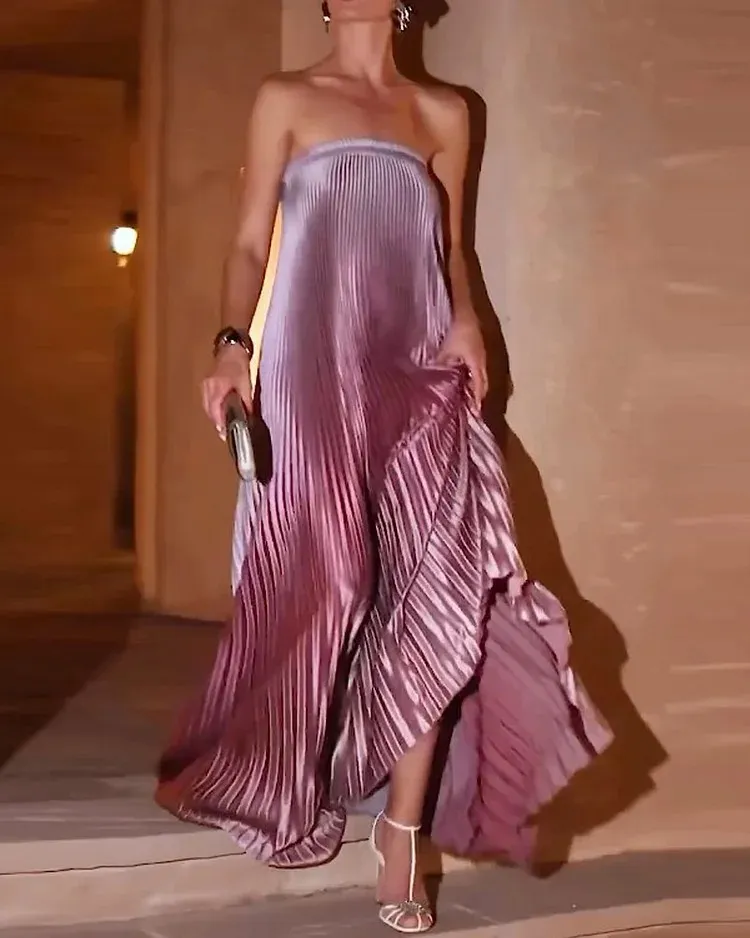 Available in an array of vibrant colors, this pleated dress allows you to express your unique personality and style. The lightweight fabric drapes beautifully, creating a flowing effect as you walk. Pair it with your favorite heels and accessories to complete the look. Whether you're dancing the night away or enjoying a fancy dinner, this dress will keep you looking chic and confident. The versatility of this dress means it can be easily styled for any season, making it a must-have addition to your closet.