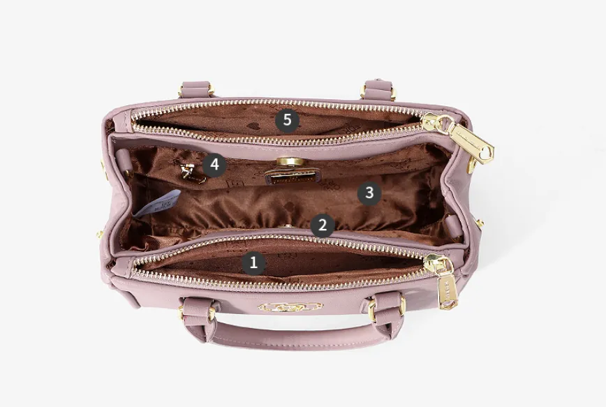 The internal structure of the bag; zipper pocket, mobile phone bag, ID bag, sandwich zipper bag