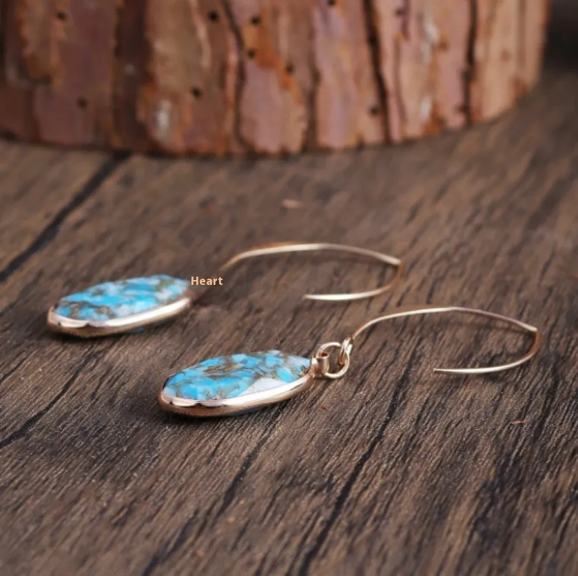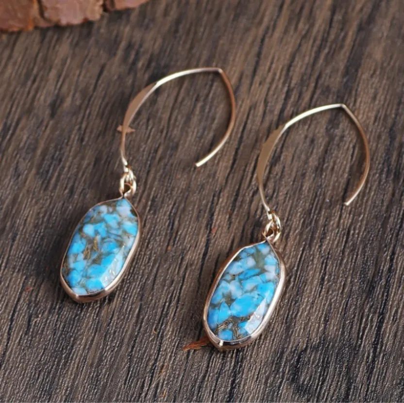 Fashion Turquoise Oval Edging Copper Earrings