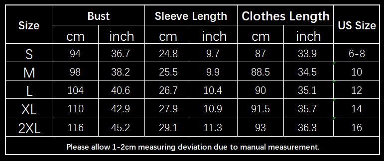 between two sizes. Please allow 2-3cm differences due to manual measurement. 2. Please check the size chart carefully before you buy