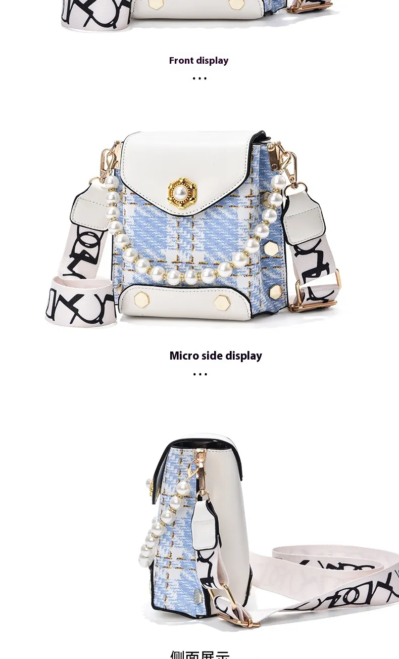 Stylish and Functional: This crossbody bag combines both fashion and function. With its pearl chain strap and elegant
