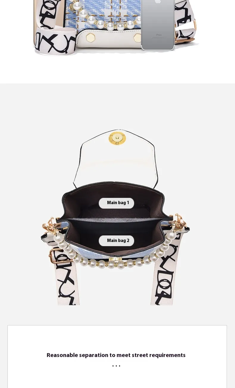 Stylish and Functional: This crossbody bag combines both fashion and function. With its pearl chain strap and elegant
