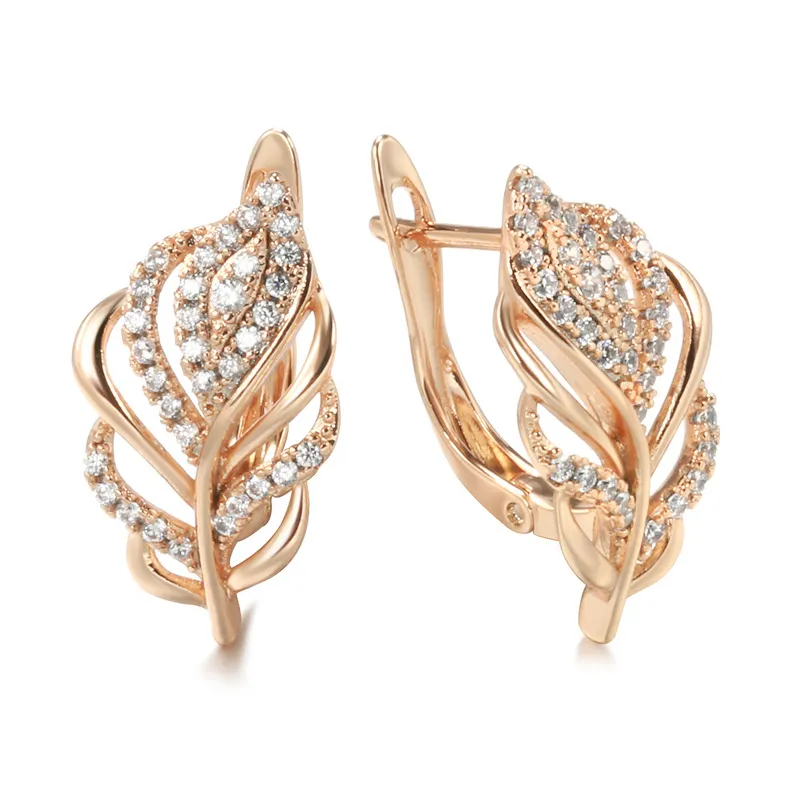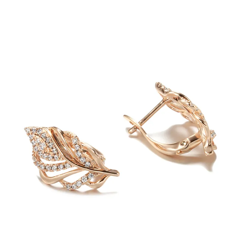 Fashion Zircon Earrings Personalized Creative Rose Gold Hollow Leaves Ear Clip