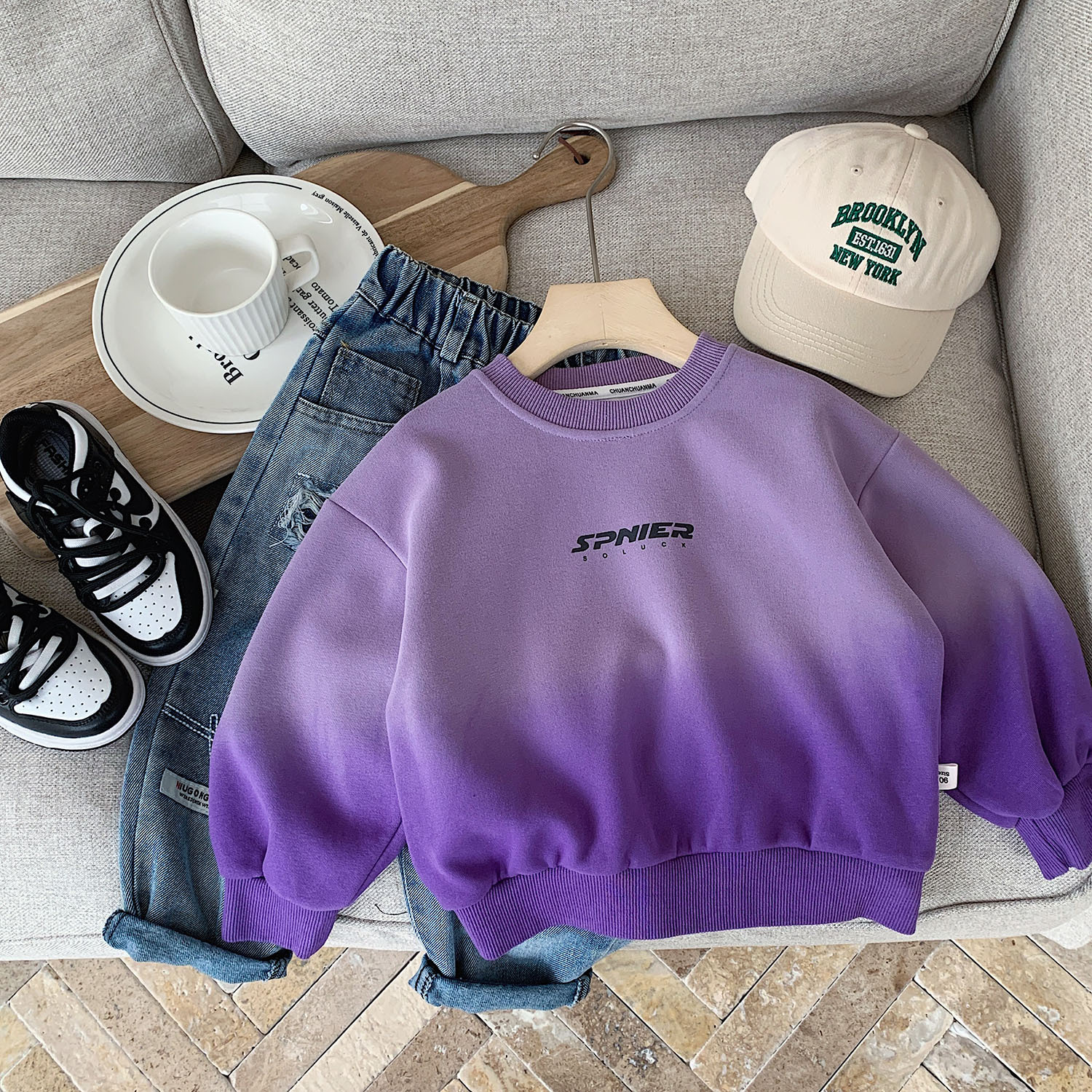 modern, street-style vibe to the outfit, making it perfect for fashion-forward kids.