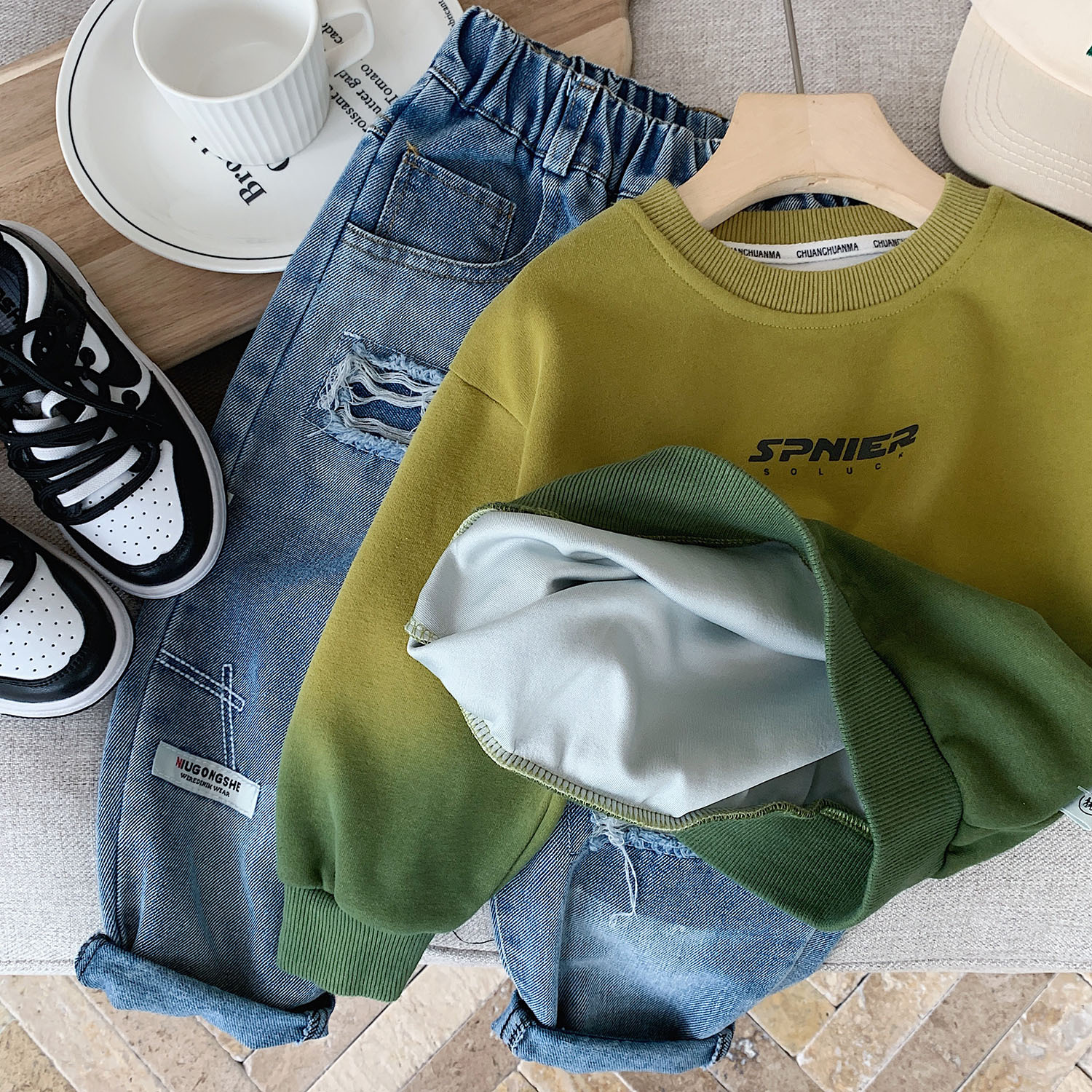 modern, street-style vibe to the outfit, making it perfect for fashion-forward kids.