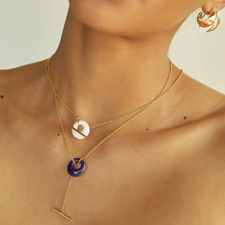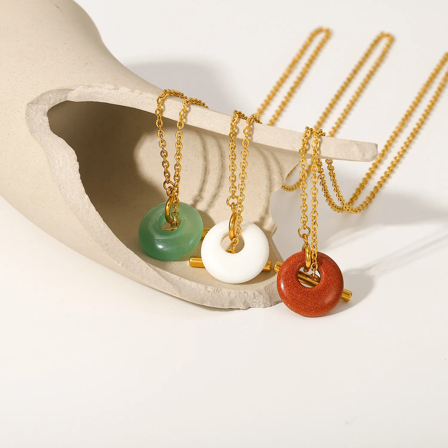 The necklace is made from 18K gold-plated stainless steel, featuring a natural stone pendant and a ball bead chain for a trendy and elegant look.