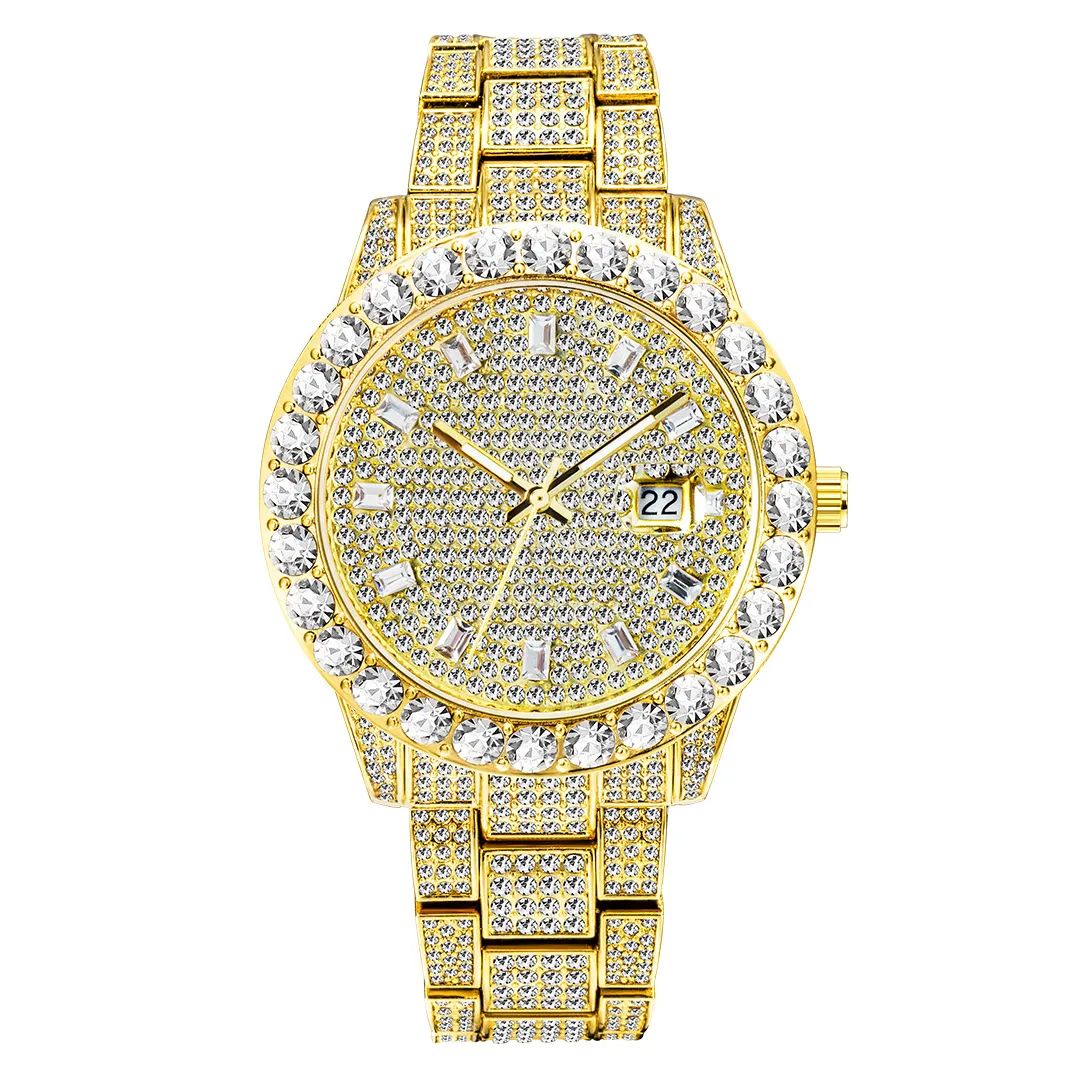 In conclusion, the Fashionable Large Dial Full Diamond Watch is a luxurious timepiece that combines beauty, precision, and functionality. The full diamond design adds a sparkling touch of elegance, while the reliable quartz movement ensures accurate timekeeping. The stainless steel case and adjustable strap offer both durability and comfort, making it the perfect accessory for any occasion. Whether you're celebrating a special event or simply adding a touch of glamour to your everyday outfit, this watch is a timeless piece that will never go out of style.