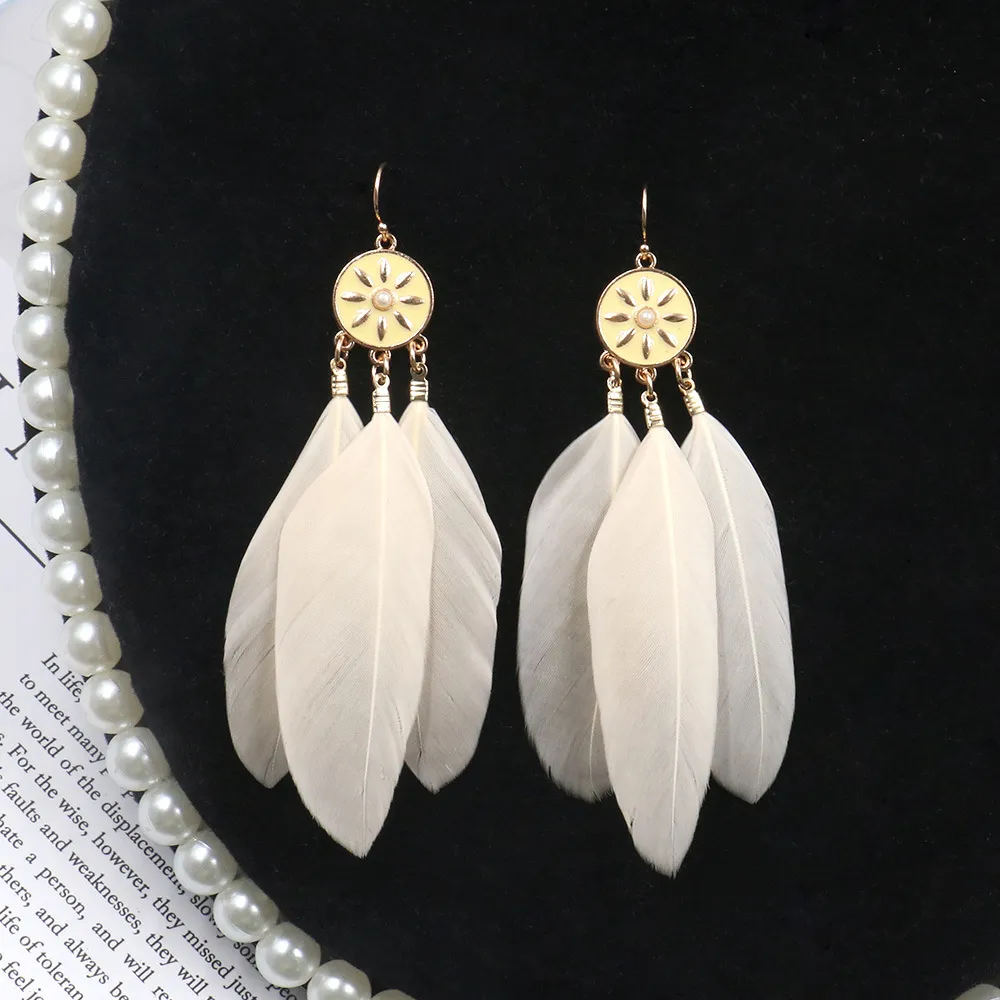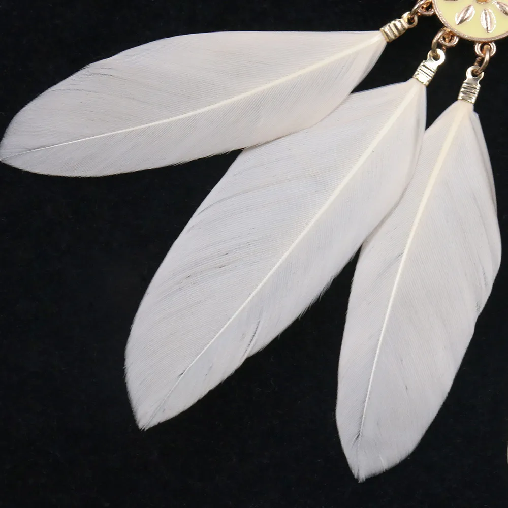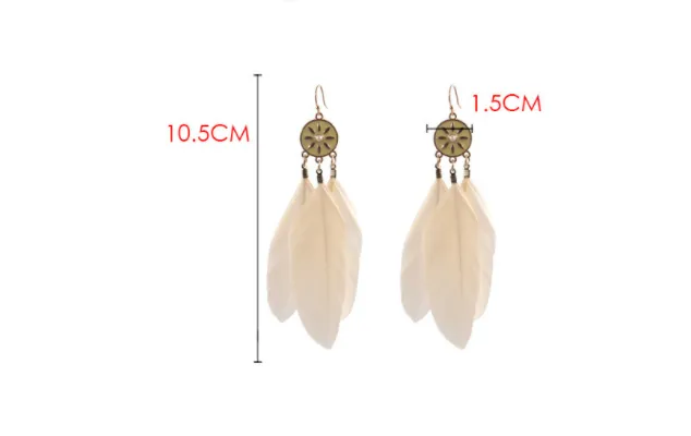 Made with soft, lightweight feathers, these earrings are comfortable enough to wear all day. The durable metal components are tarnish-resistant, ensuring your earrings stay shiny and beautiful. Their simple yet elegant design makes them perfect for any occasion.