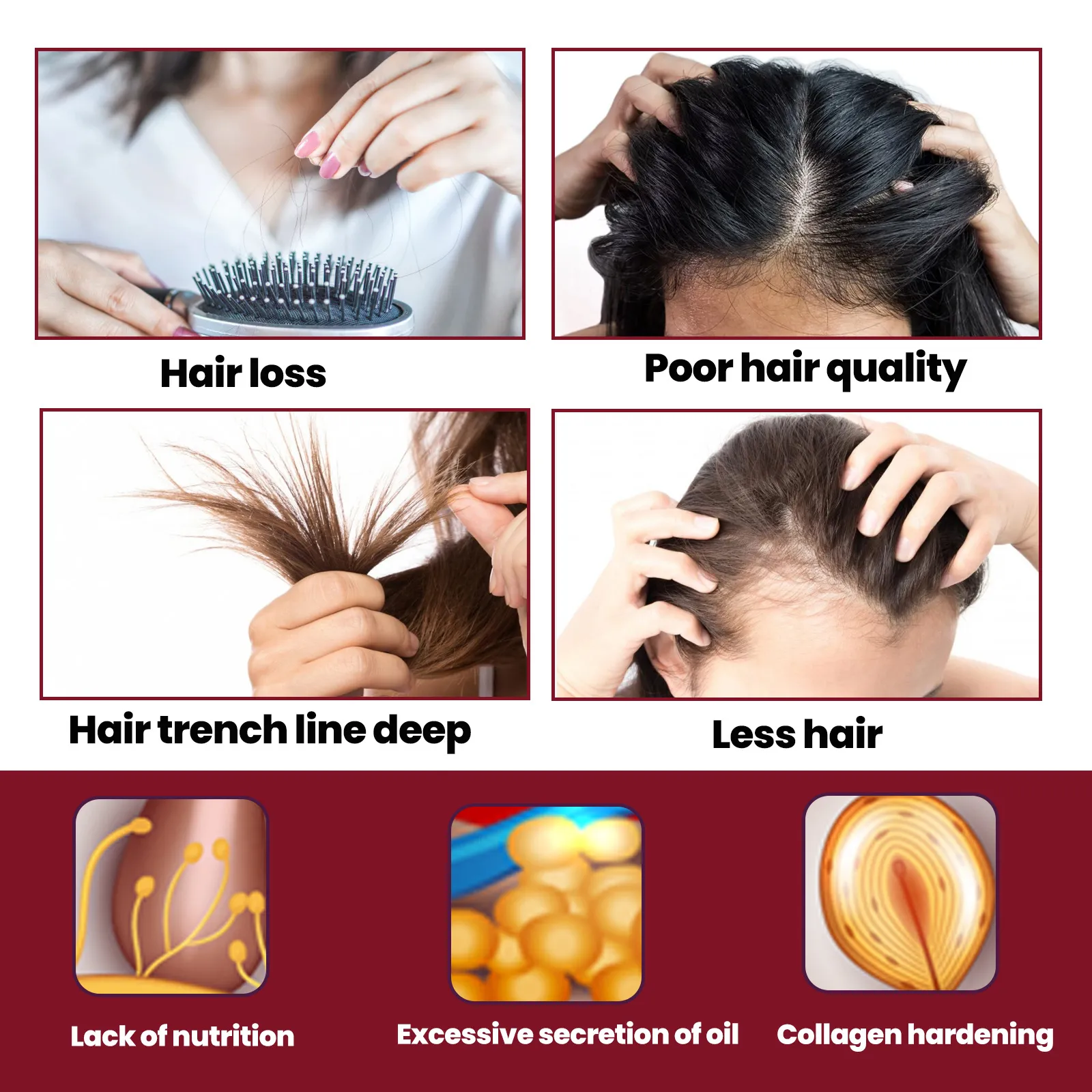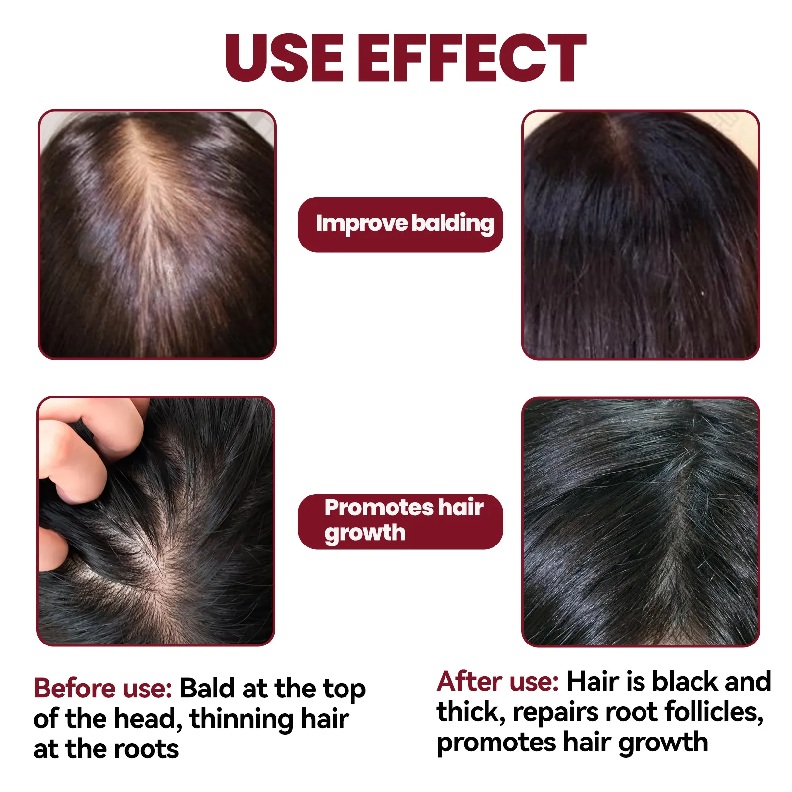 - Biotin: Essential for hair strength and growth, biotin helps improve hair density and thickness.