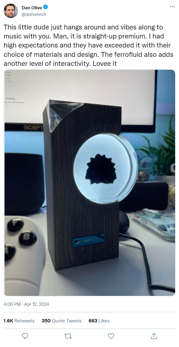 Ferrofluid Sound Visualizer turns up the cool in any room. Just play a song, and watch as the fluid shapes and moves with the rhythm—no speakers needed, just pure visual fun.