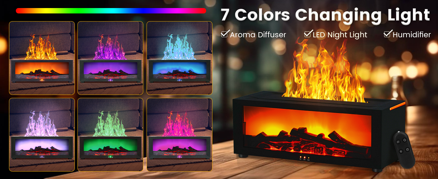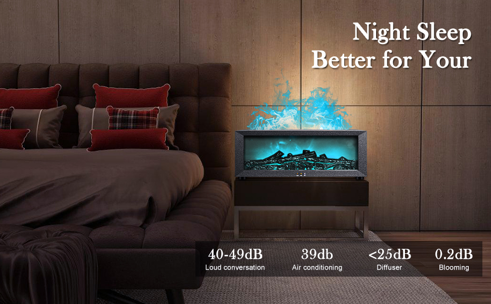 - 【Flame Lamp】Complemented by ambient flame lighting, the mist resembles real flames, featuring seven-color cycling, breathing, single-color fixation, and two sound reactive effects. You can freely choose according to your preferences! Suitable for bedrooms, offices, homes, yoga, games, and more. It provides you with high-quality enjoyment and enhances your quality of life.