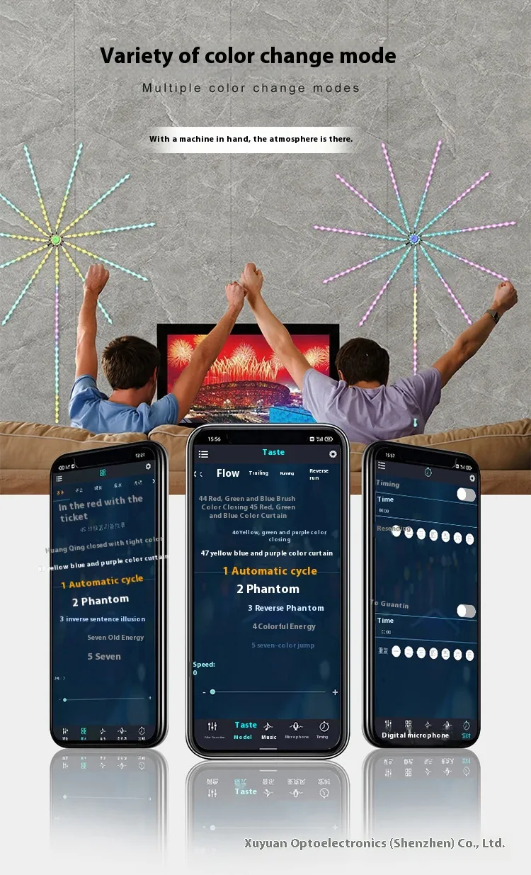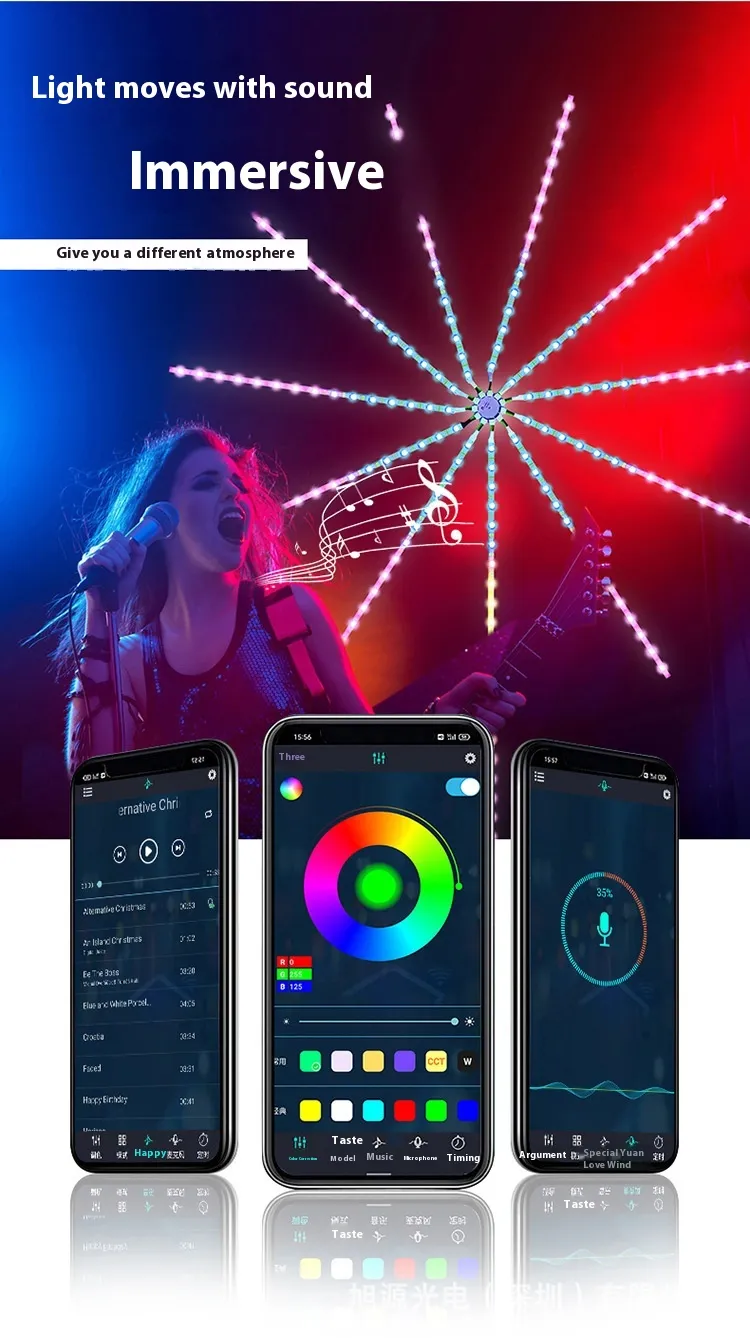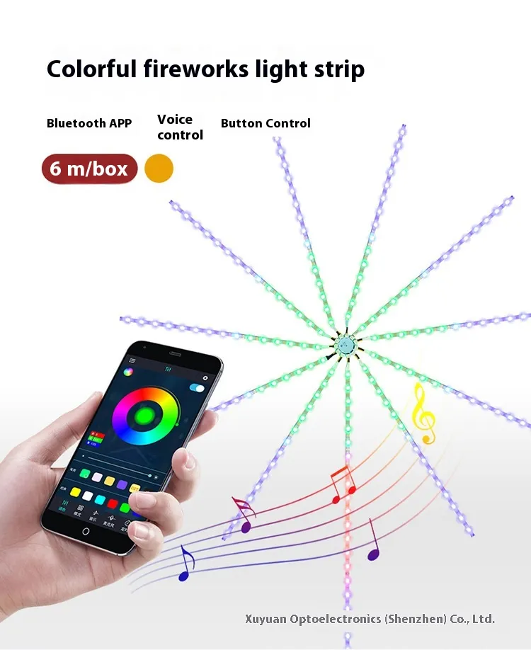 Dynamic Firework Effects: The LED strip creates a stunning fireworks-like visual display, with colorful light patterns that