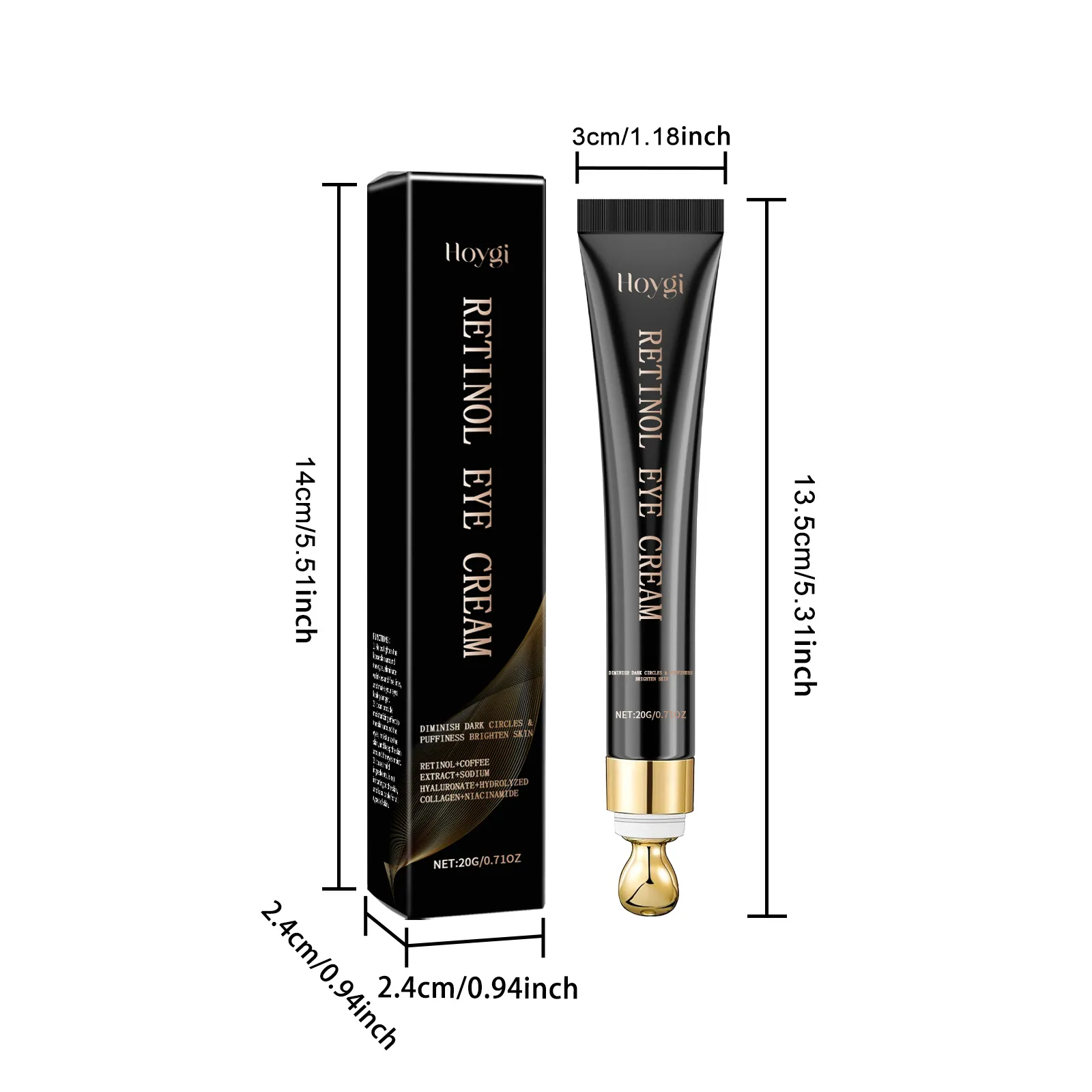 Ingredients: Retinol, coffee extract, sodium hyaluronate, Hydrolyzed collagen, nicotinamide