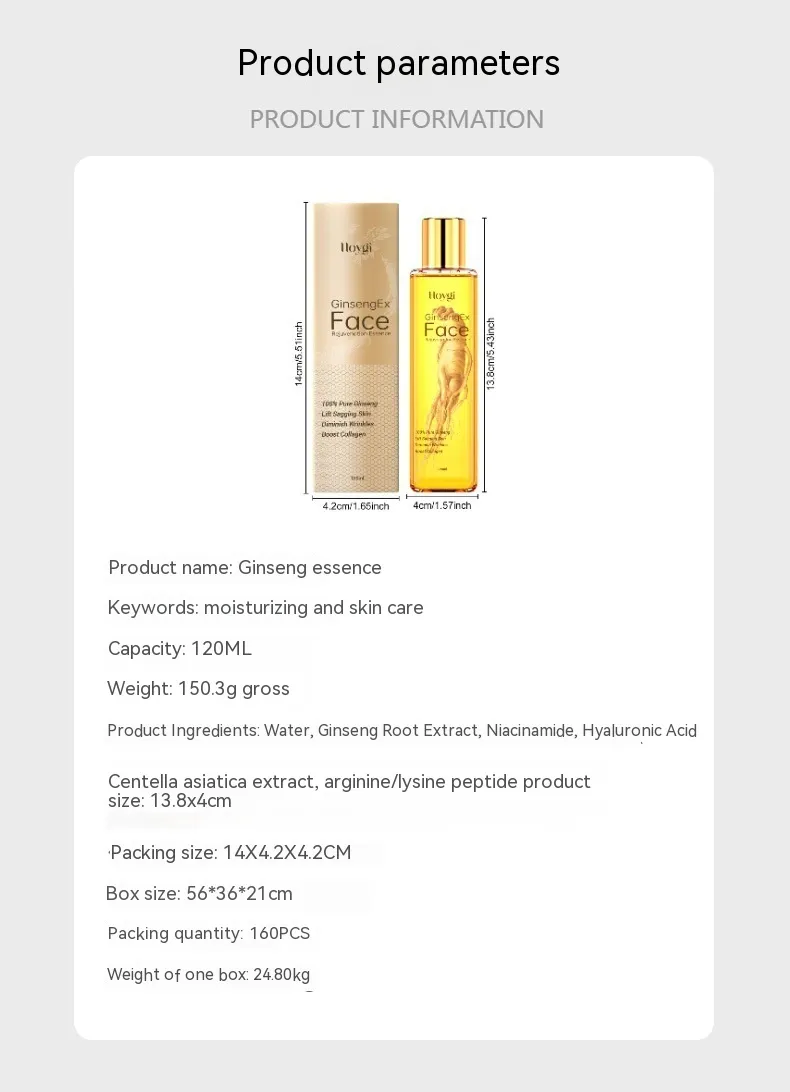 Ingredients: Water, extractive of ginseng's root, nicotinamide, hyaluronic acid,