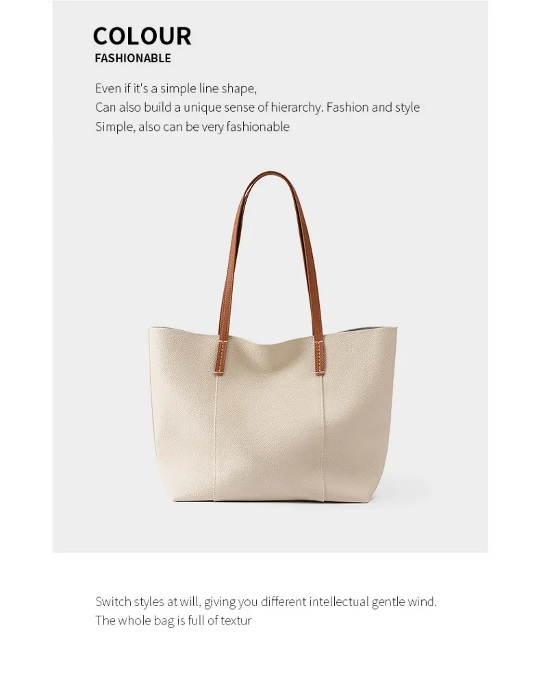 The sleek, minimalist design of this tote bag pairs perfectly with any outfit, making it a timeless and all-season accessory. Whether you're dressing up for a night out or dressing down for a weekend brunch, this bag adds an elegant touch to any look. The simple yet sophisticated appearance ensures that it never goes out of style.