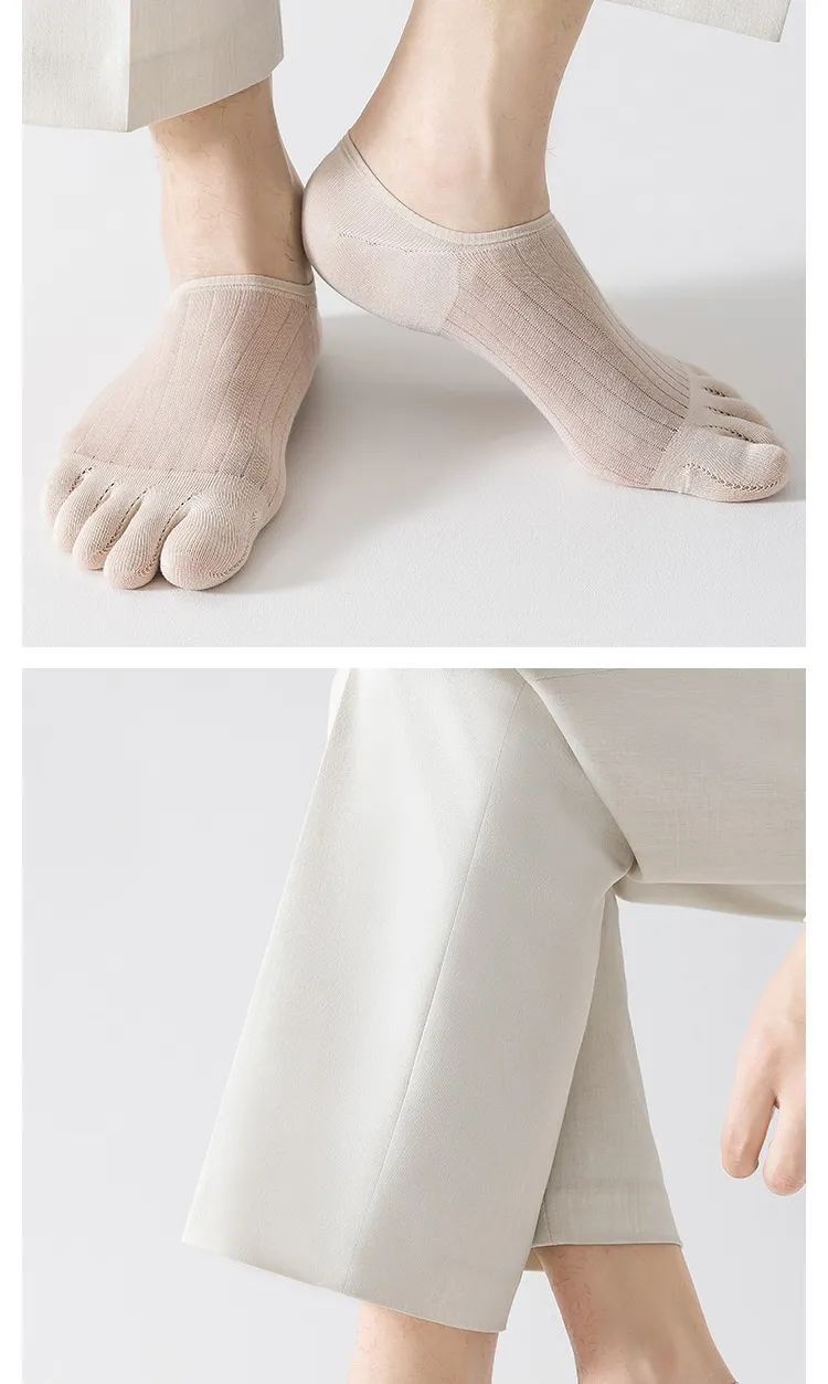 Five-finger Men's Summer Cotton Boneless Antibacterial Invisible Socks