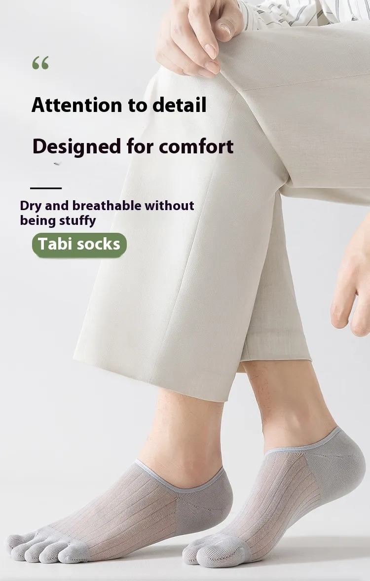 Keep your feet cool, comfortable, and fresh with the Five-finger Men's Summer Cotton Boneless Antibacterial Invisible Socks in Black. These innovative socks are designed for comfort and functionality, providing a perfect fit for summer. With their unique five-finger design and boneless construction, these socks offer freedom of movement, breathability, and protection, ensuring your feet stay dry and comfortable throughout the day.
