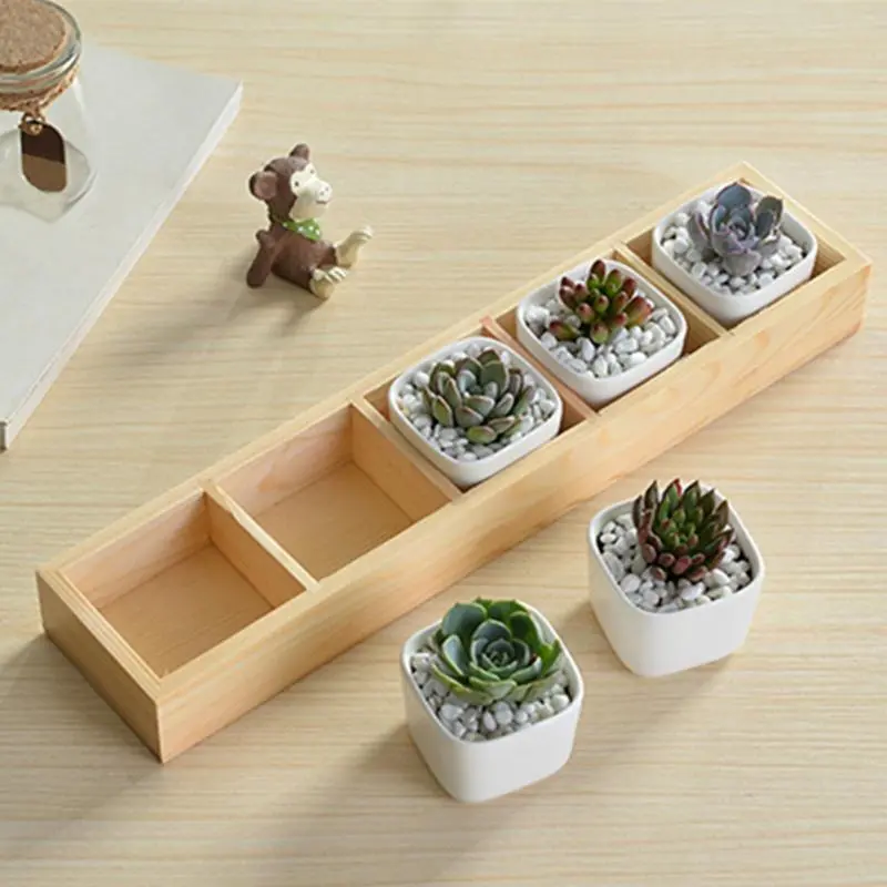 Five Grid Flower Pot Wooden Tray Succulent Flower Pot