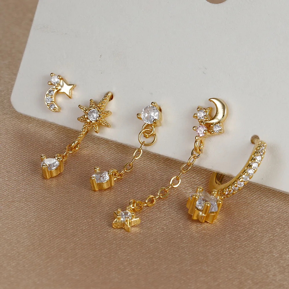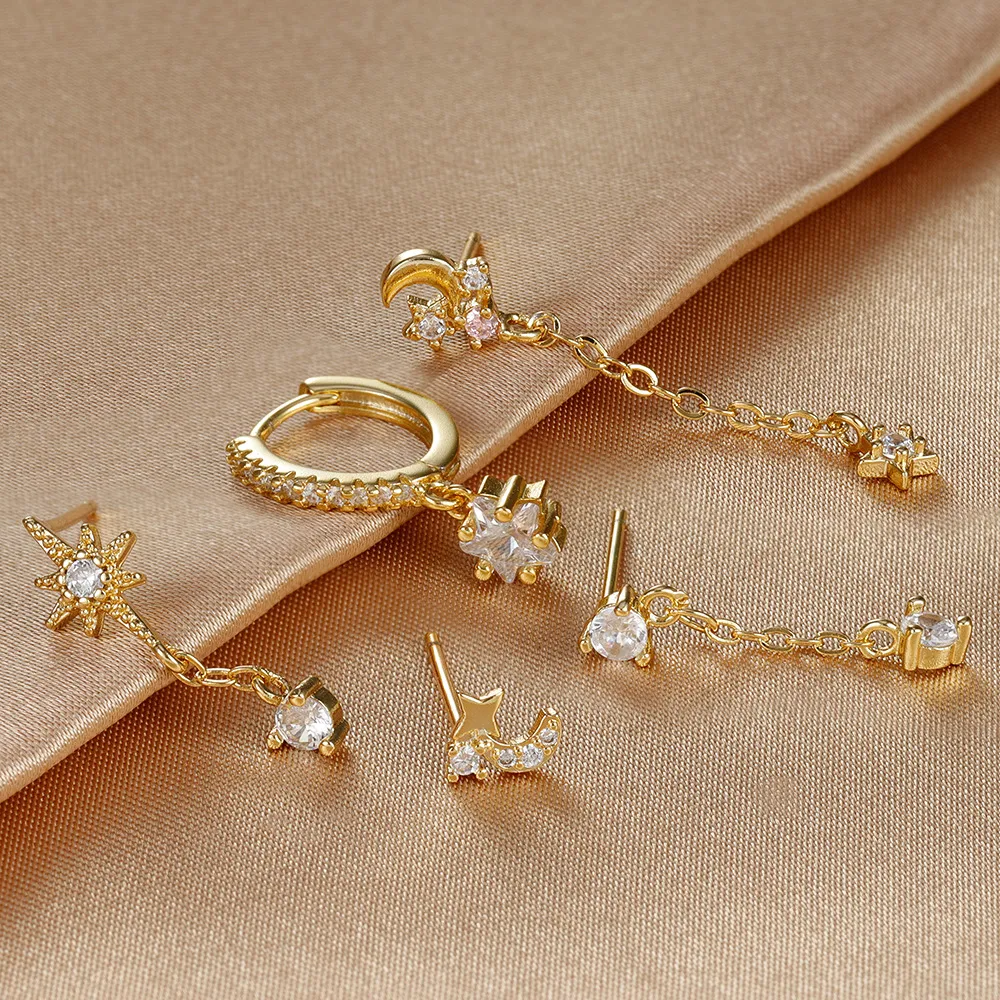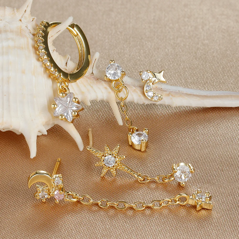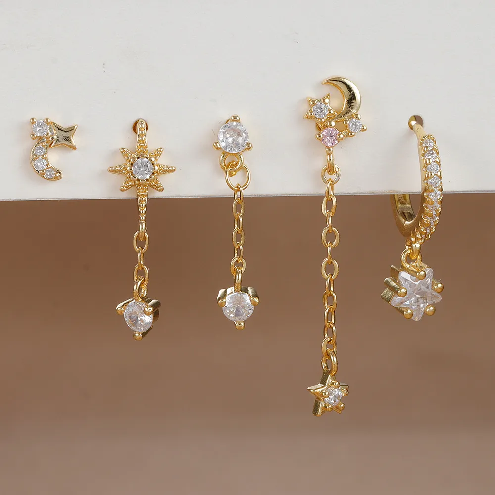 Five-piece Earings Set Chain Star Moon
