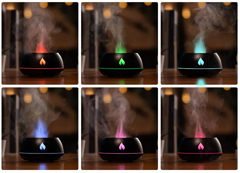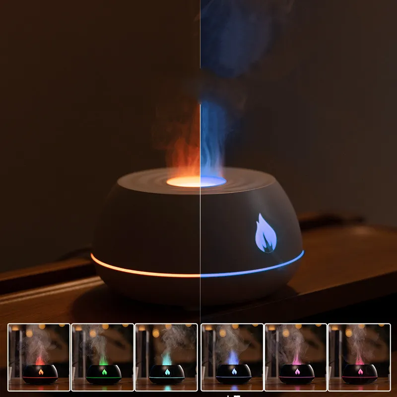 Flame Humidifier Aromatherapy Diffuser 7 Colors Light Home Air Humidifier 130ML USB Room Fragrance Essential Oil Diffuser