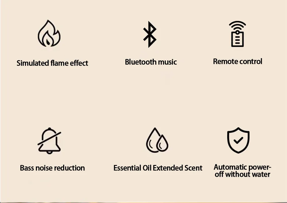 Flame Humidifier – Bluetooth, LED Light, Remote Control Aromatherapy Machine