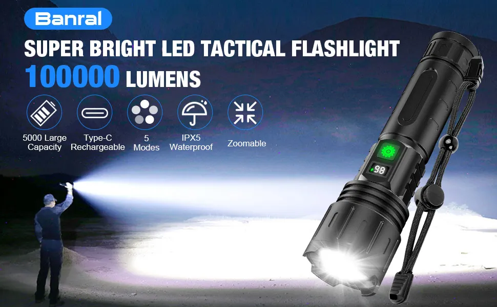Made from high-quality materials, this flashlight is built to last. The shock-resistant and waterproof features ensure it performs reliably, even in rough conditions or inclement weather.