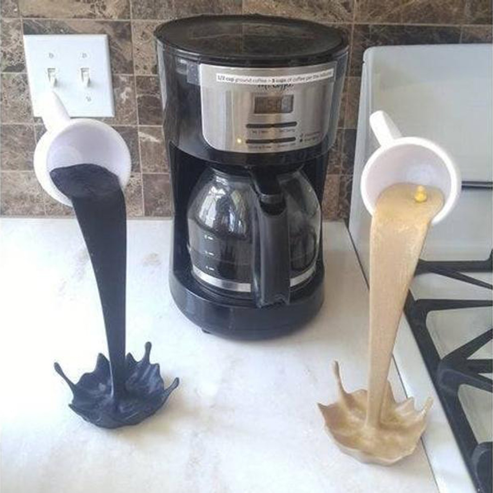 This sculpture art floating pouring coffee cup mug can be right in for any decor style.