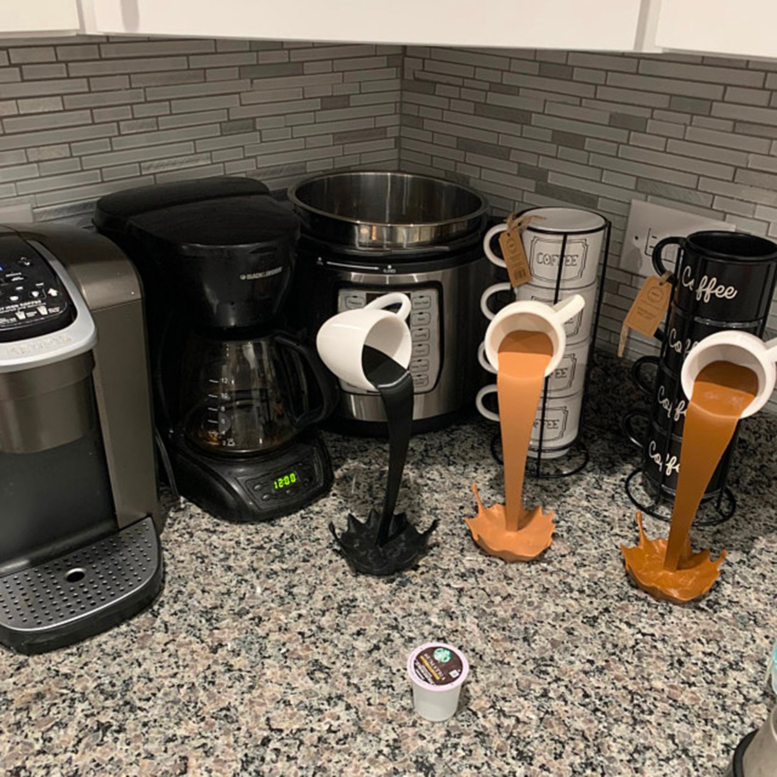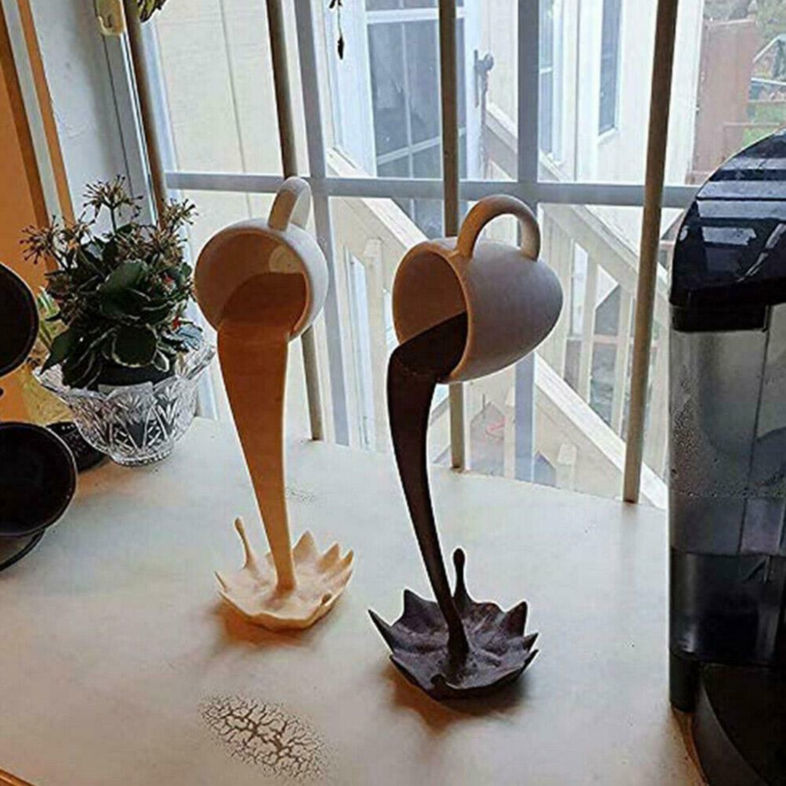 - 【Novel Design Features】 tilted coffee cups, suspended designs, and poured coffee form this characteristic decorative coffee cup sculpture,Let you be surprised by its special shape
