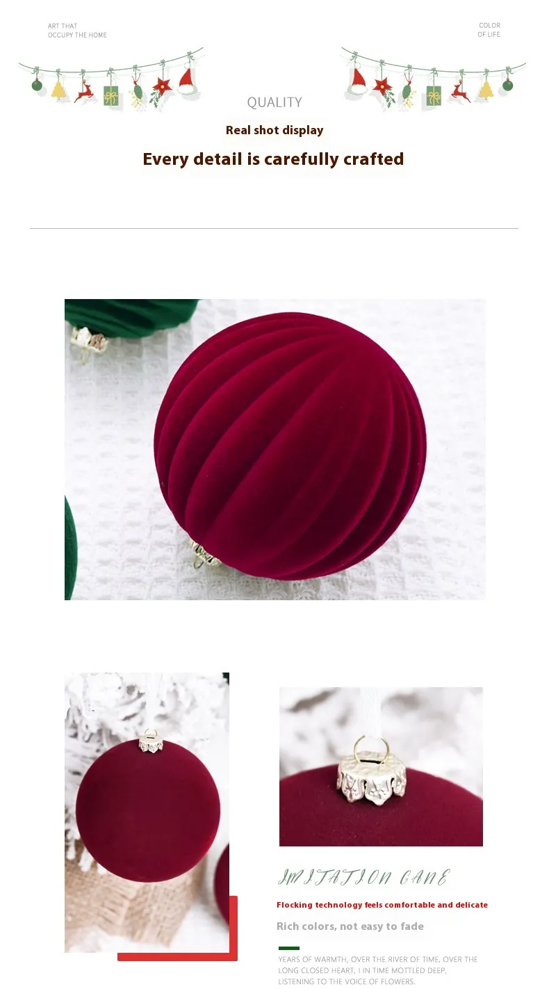 Crafted from durable materials, these Christmas tree pendant flocking balls are built to withstand multiple holiday seasons, ensuring they remain beautiful year after year. The wine red and dark green colors are rich and vibrant, adding depth to your tree without overwhelming the other decorations. Each ball is carefully flocked for a soft, velvety feel that enhances the texture and gives your tree a cozy, snow-kissed appearance.