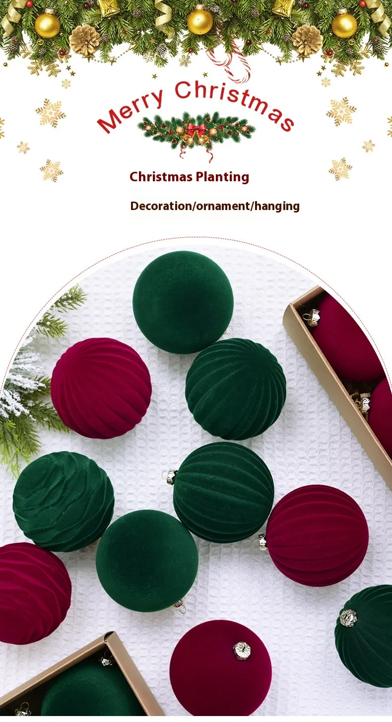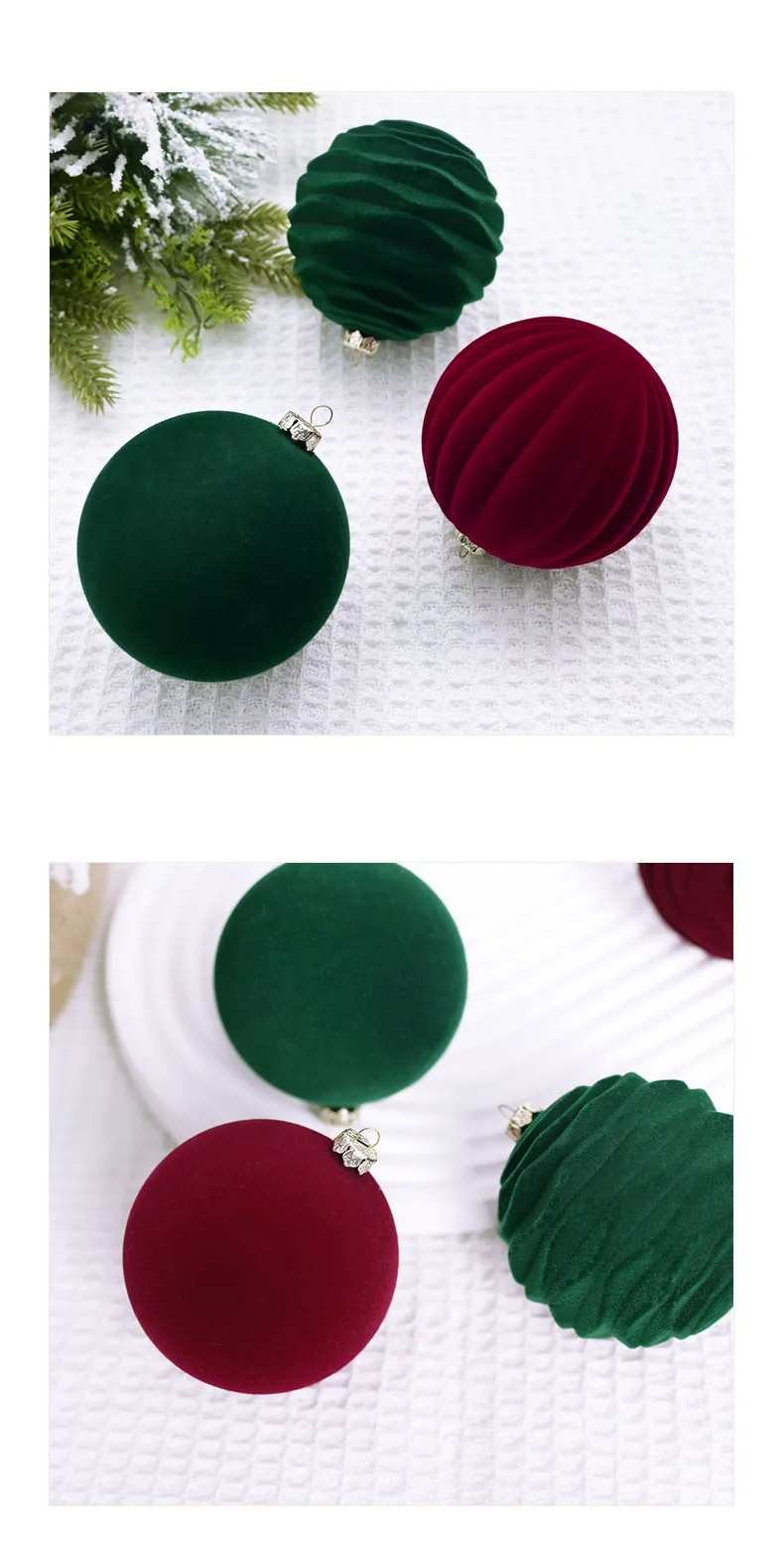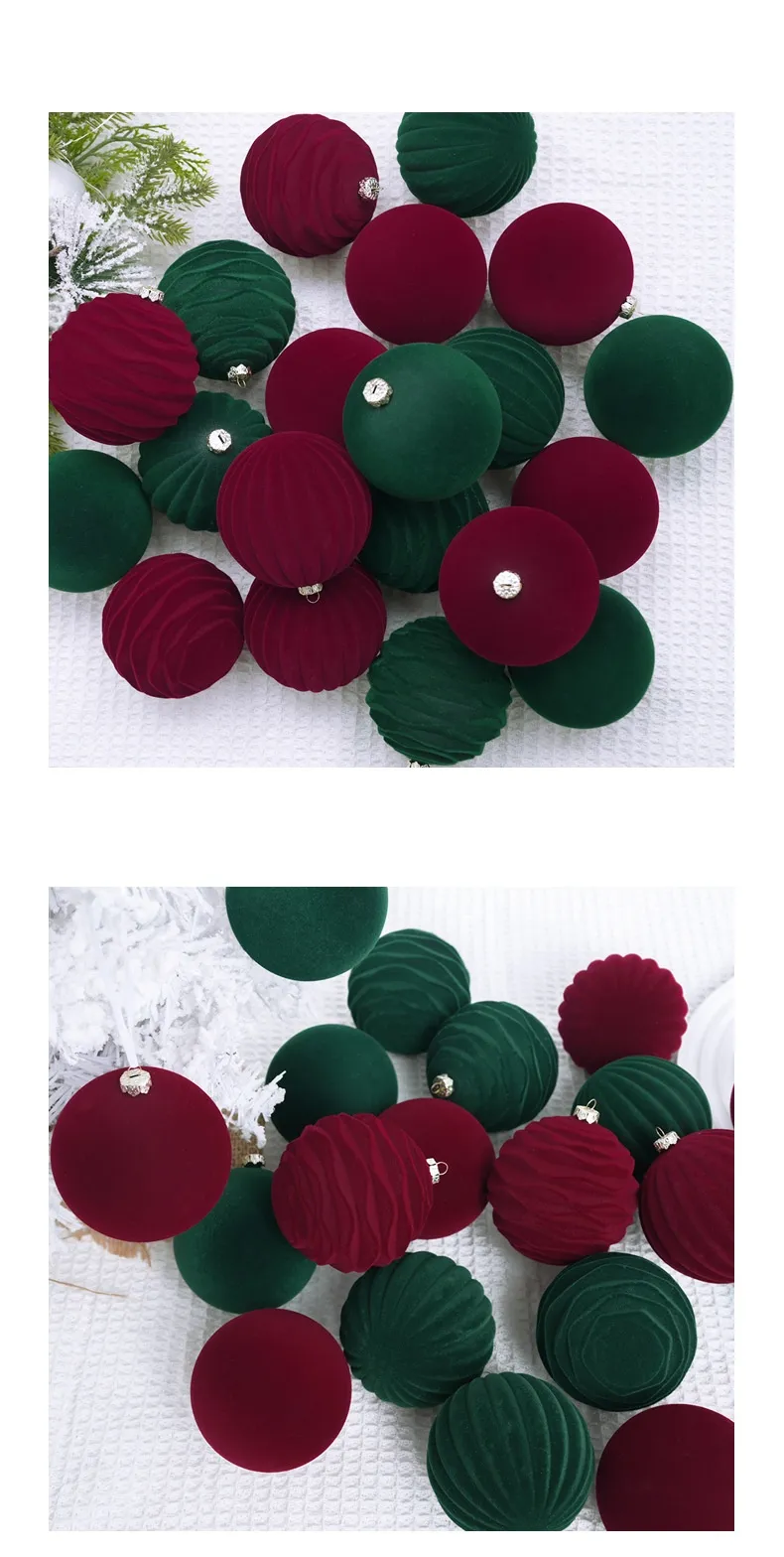 Flocking Christmas Ball Christmas Tree Pendant Wine Red Dark Green Christmas Flocking Ball Decorations