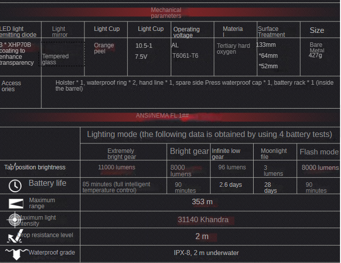 This state-of-the-art portable flashlight offers incredible brightness, long-lasting battery life, and a rugged build. With 11000 lumens of ultra-bright illumination, it ensures you never struggle with low visibility again.