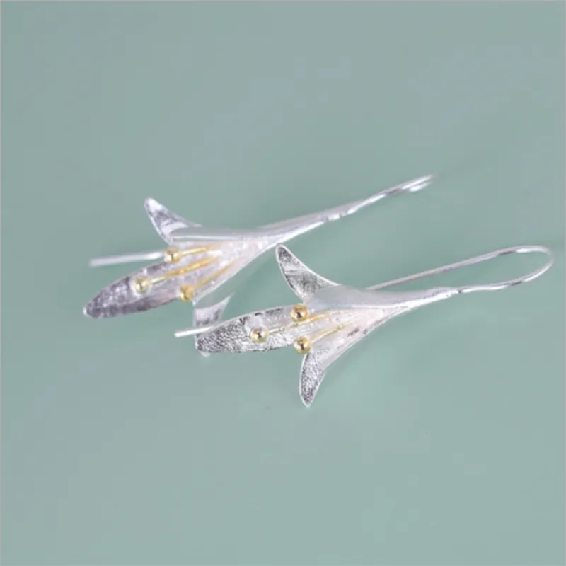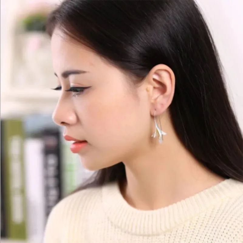 Flower Long Earrings Elegant Lady Anti Allergy Silver 925 Fashion Jewelry