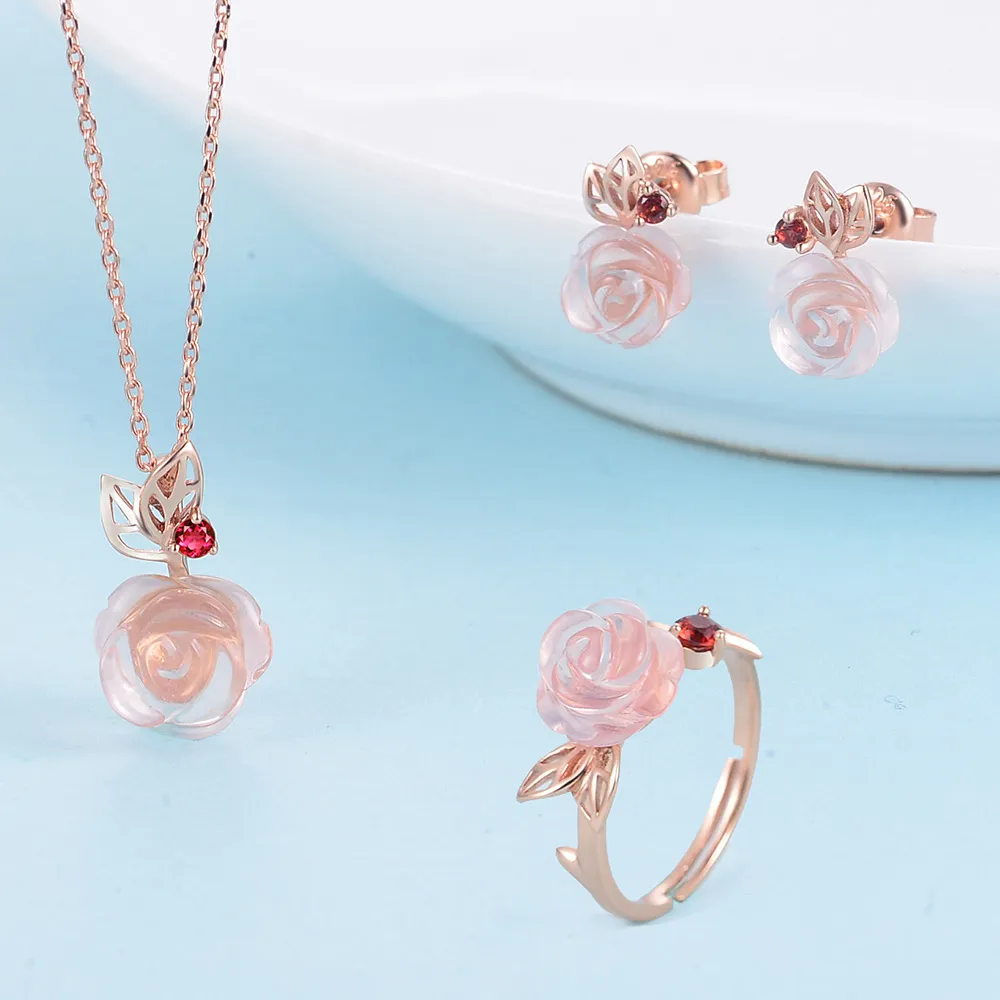 【Item Type】: Rose Flower Pink Rose Quartz Jewelry Set