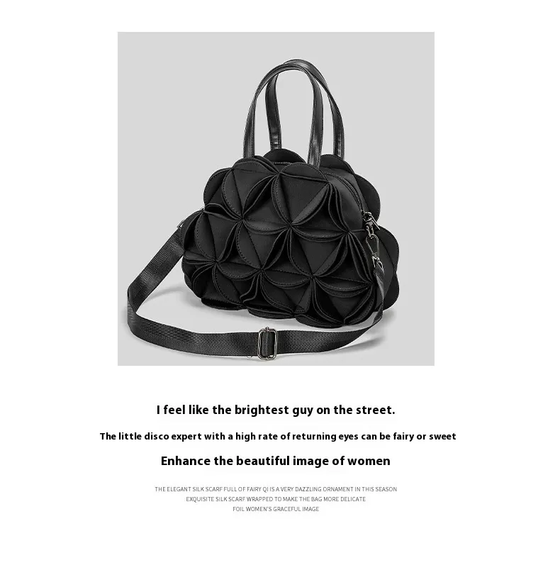 Designed for the modern woman, this bag blends fashion-forward design with practicality. The flower-shaped structure creates a playful yet chic aesthetic, while the adjustable strap ensures comfort and versatility for daily use. The spacious interior offers ample room for your phone, wallet, cosmetics, and other small personal items, making it perfect for everyday outings.