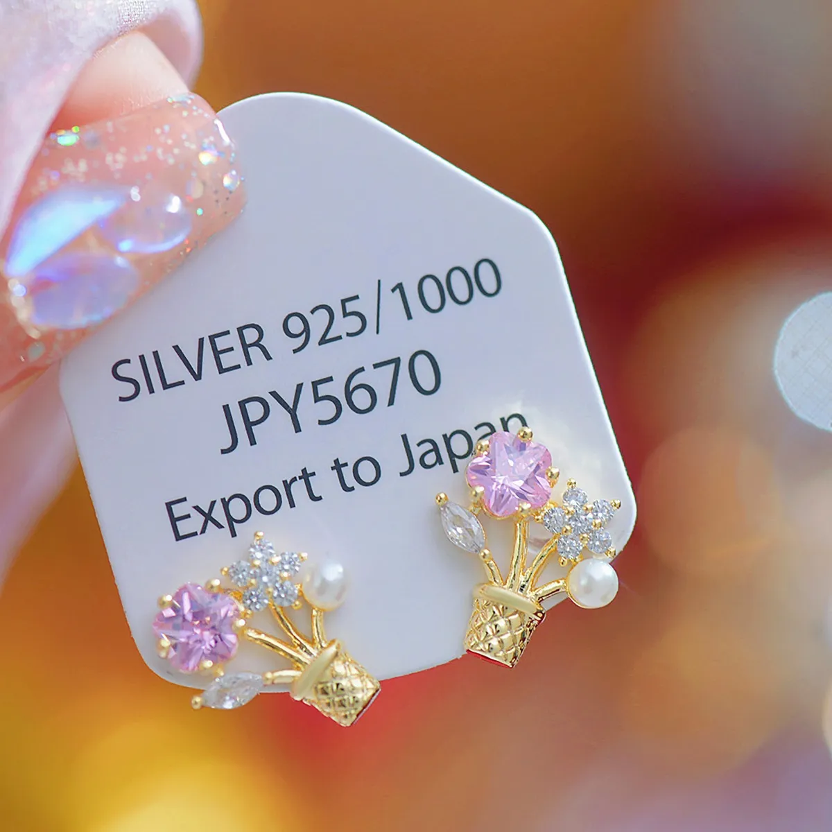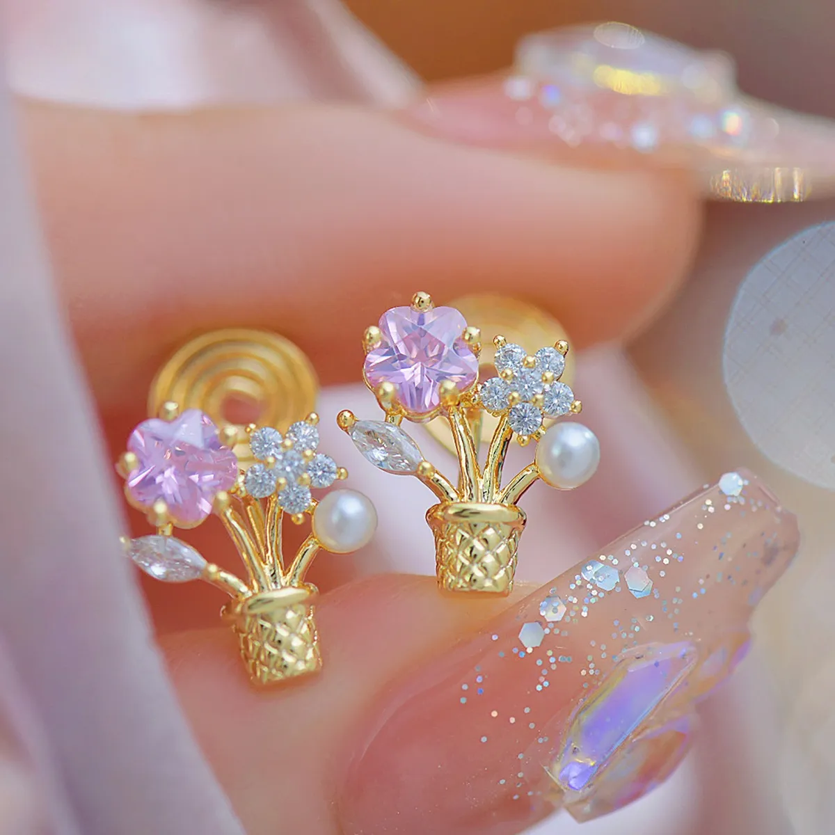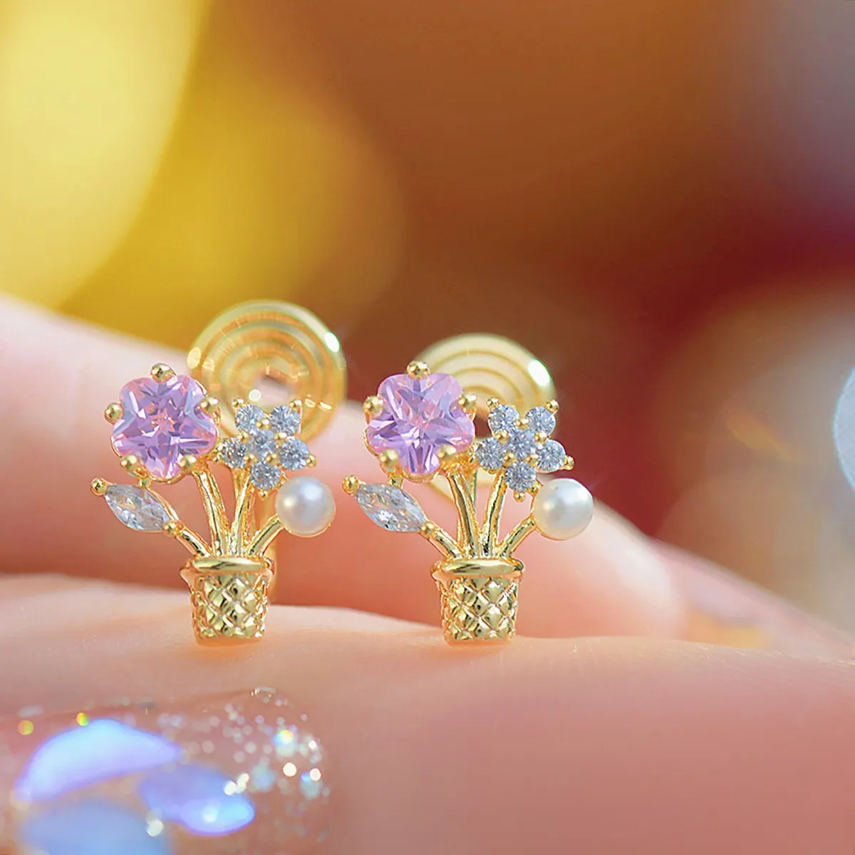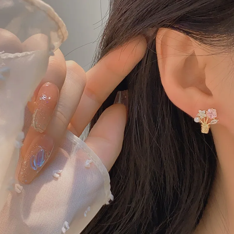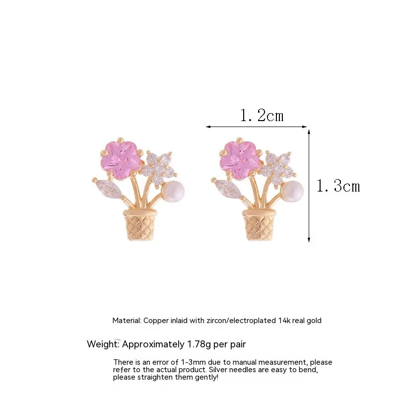 Looking for a thoughtful and elegant gift? These flower zircon potted bouquet ear studs are a perfect