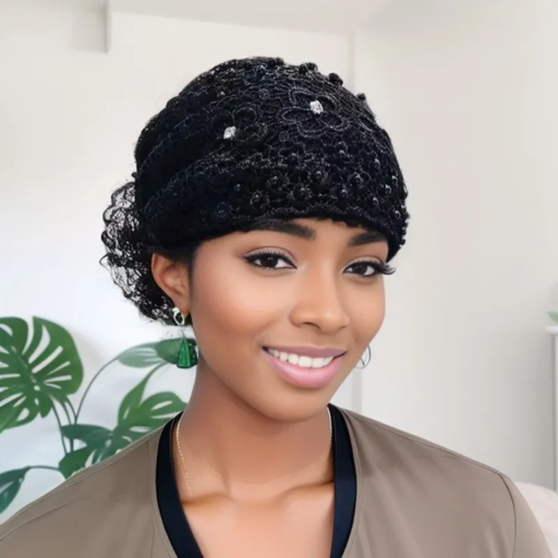 Color: beaded plum hat-Brown, beaded plum hat-dark blue, beaded plum hat-black, beaded plum hat-pink, beaded plum hat-Gray