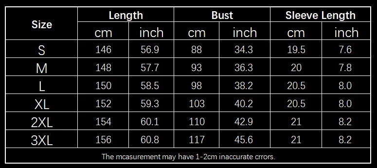 allow 2-3cm differences due to manual measurement.
