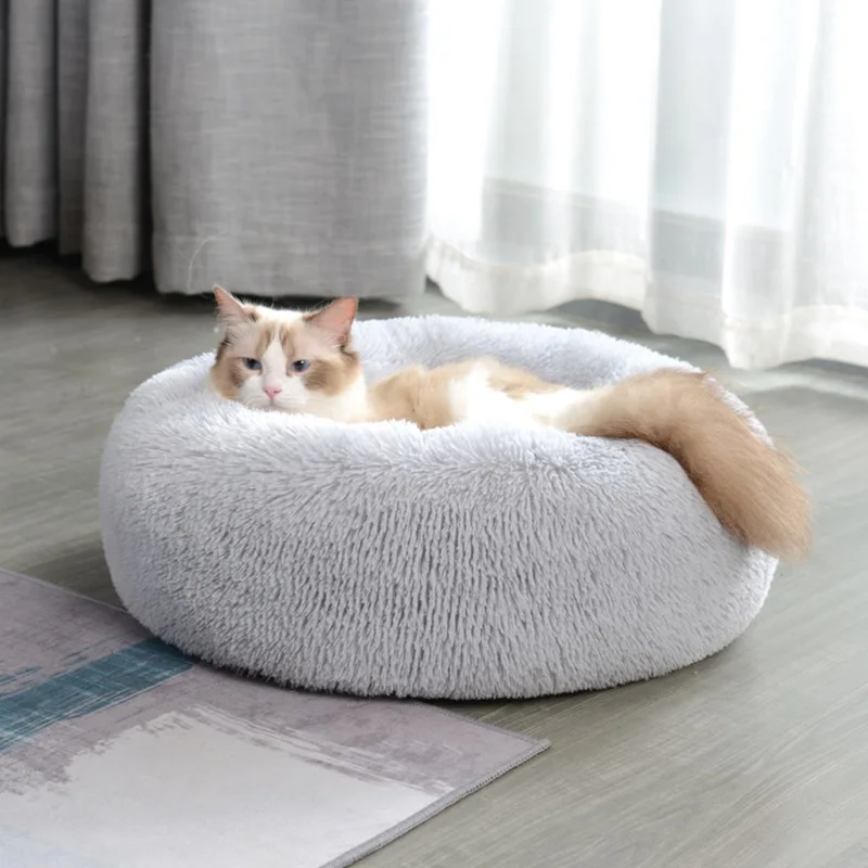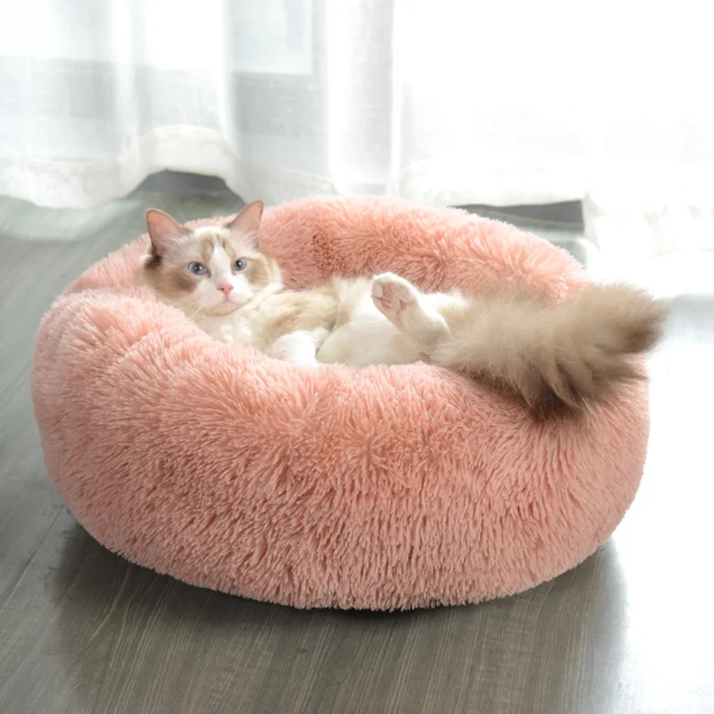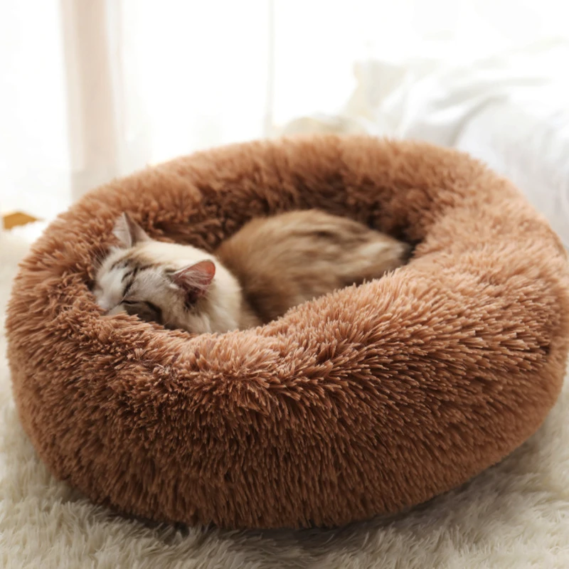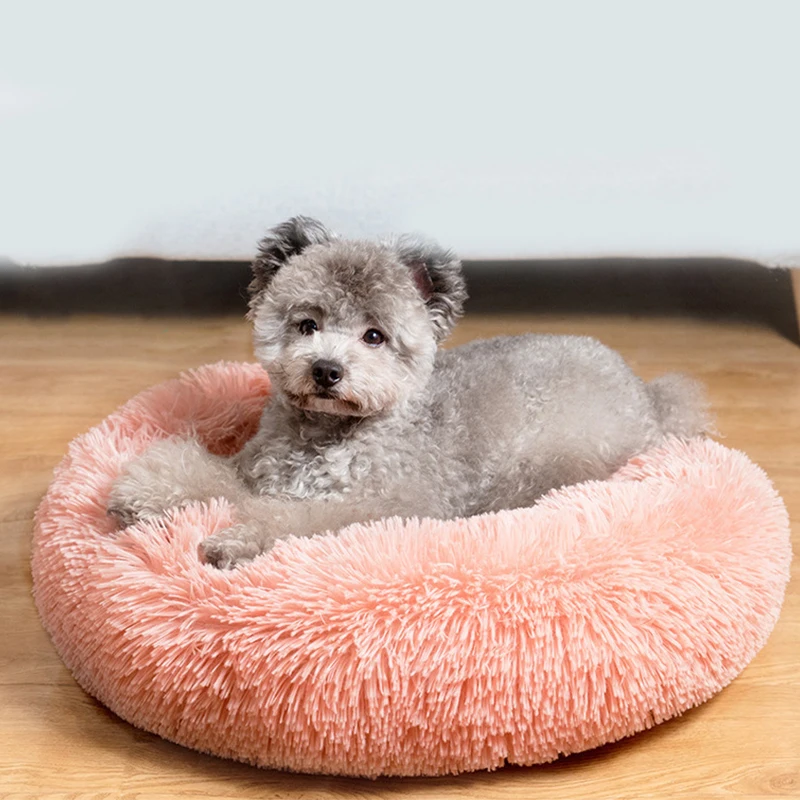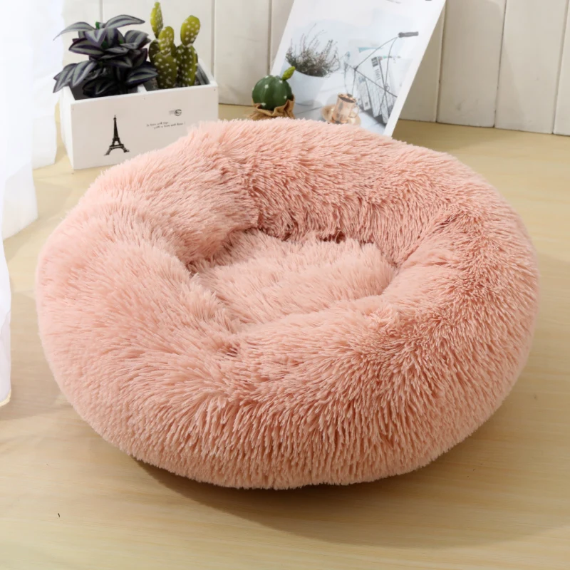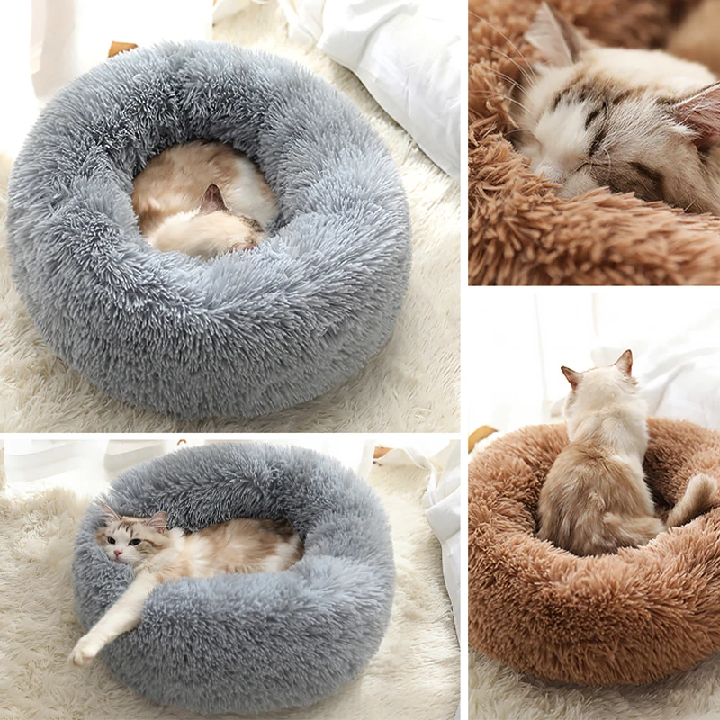 Pets Love To Sleep In It. Easy To Clean And Wash.Soft and Safe: The pet beds are made of cotton, a synthetic solid material explicitly designed to be safe for animals and humans. This donut pet bed also can keep your pet self-warming and comfortable in cold weather.Better Sleep: Our high-quality fluffy bed is ideal for pets who enjoy curling up! The raised rim can bring a sense of security and provide head and neck support, relieving your pet's anxiety, easing the transition to a new environment. Round pet beds provide more comfortable deep sleep and let pets feel more secure and surrounded by their love.Reduce Pet Anxiety: Like any curling position, providing head and neck support, the soft texture allows both dogs and cats to relieve any anxiety, also allowing you to feel less anxious and keep your best friend feeling comfy and quiet.Convenient: The non-slip pet donut bed is surrounded by soft fabric, fluffy and soft to the touch. Putting in your carpet, couches, sofas, chairs, beds, floors, and cars are convenient.