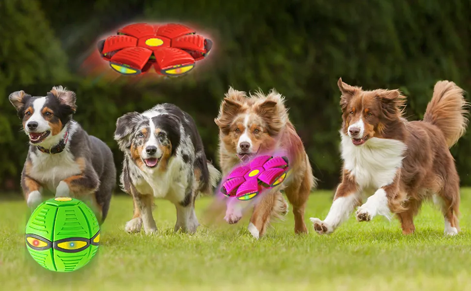 【Pet Interactive Toy】Dogs and adults alike will love this fun and fantastic fly ball stress relief toy. A few seconds later, the shape of the disc flew out and turned into a ball in the air, and the flying saucer automatically turned back into a ball, allowing the companion to catch the magic ball toy.