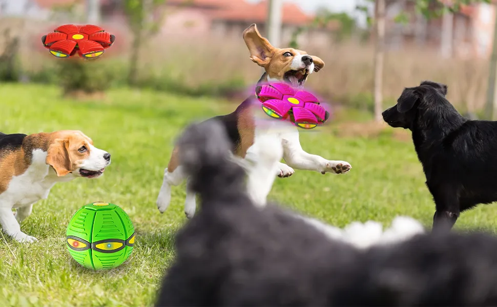 【Pet Interactive Toy】Dogs and adults alike will love this fun and fantastic fly ball stress relief toy. A few seconds later, the shape of the disc flew out and turned into a ball in the air, and the flying saucer automatically turned back into a ball, allowing the companion to catch the magic ball toy.