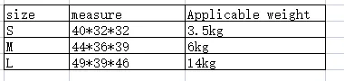 Size: S-small within 7 catties, M-medium within 15 catties, L-large within 28 catties