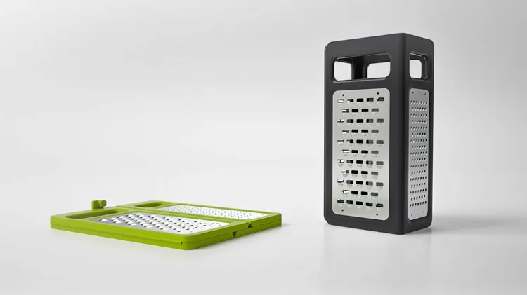 coarse for cheeses and vegetables, ultra-coarse for soft cheeses, and slicer for a variety of vegetables.The box grater is divided into four