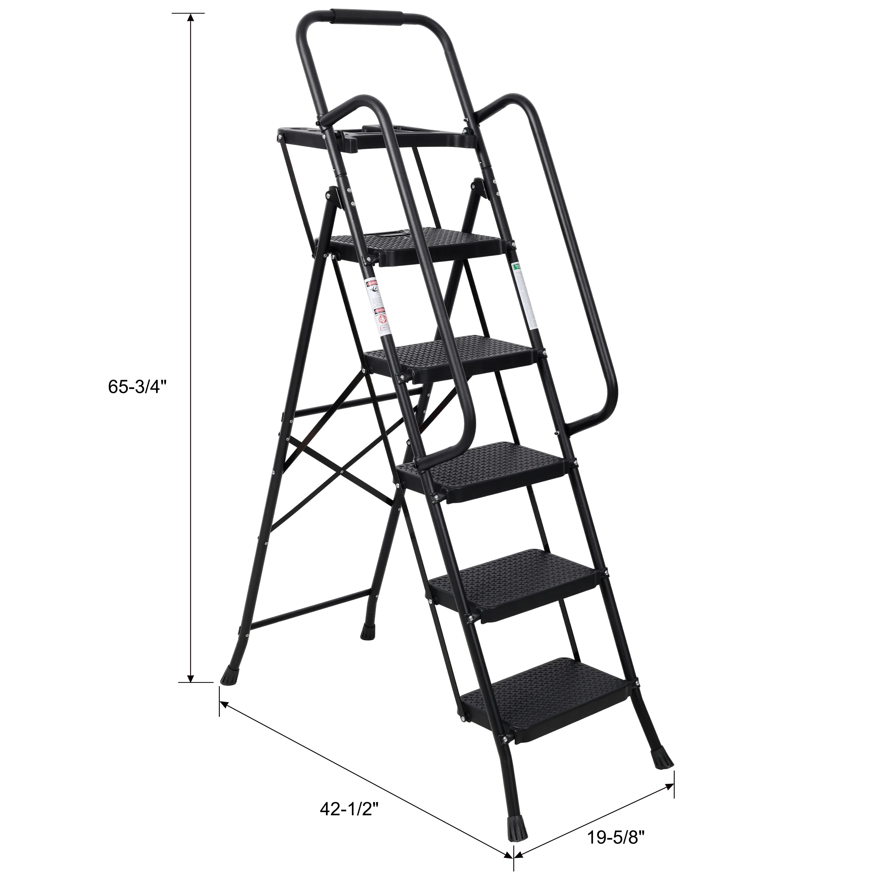 - LADDER SIZE: Open: 42.5" x 20" x 66", folded: 72.10" x 21" x 10.50", net weight: 25pounds. Please refer to the instruction manual, no extra tool is needed, and easy assembly within 10 minutes.