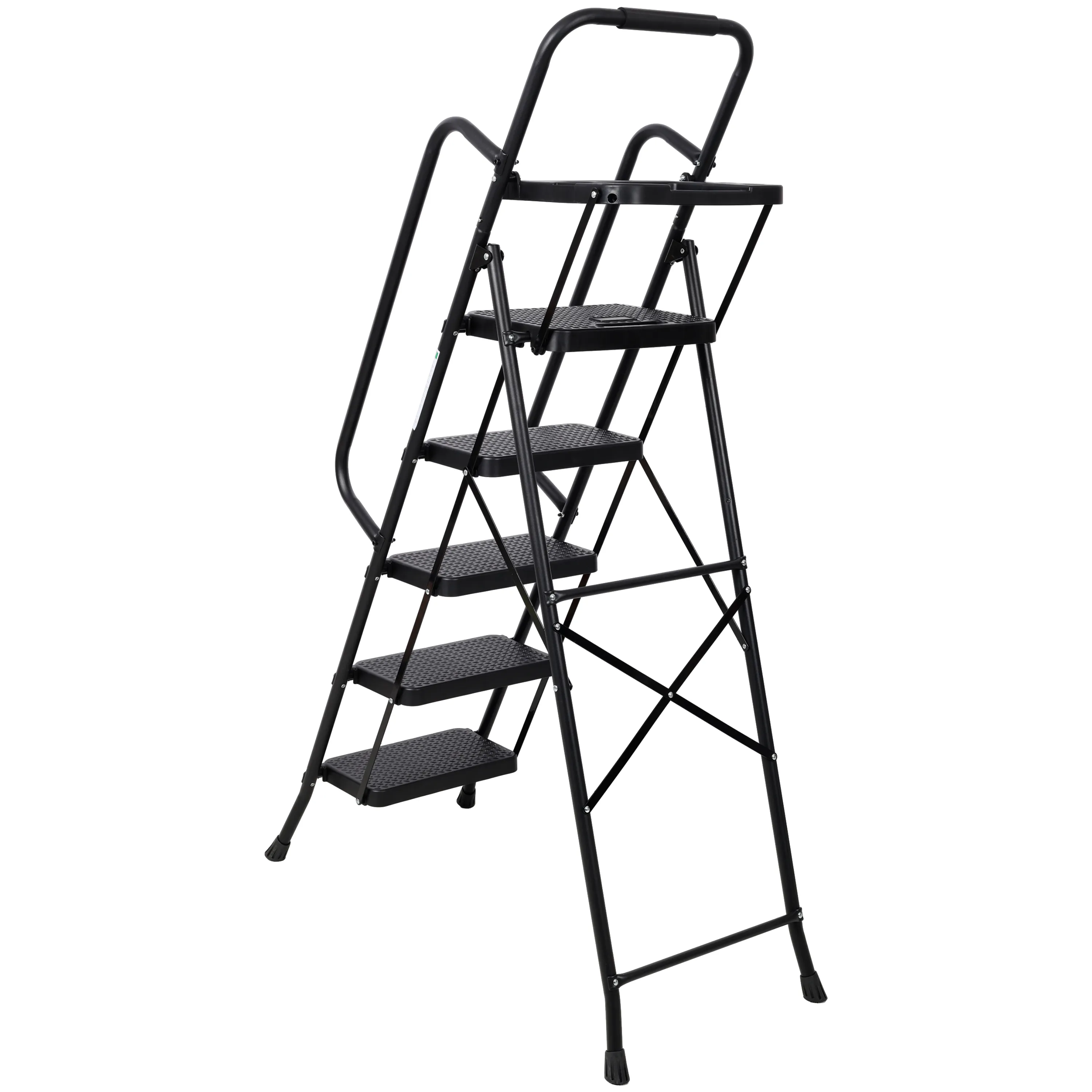 - This Folding Step Ladder is perfect for using at kitchen, pantry, bathroom, office, home, garage, outdoor, books pavilion, etc. Not only as a ladder, but also a shelf for daily use, a step stool for rest. Tips: unfold the step ladder mostly and then stepping on the bottom step to push it the rest of the way