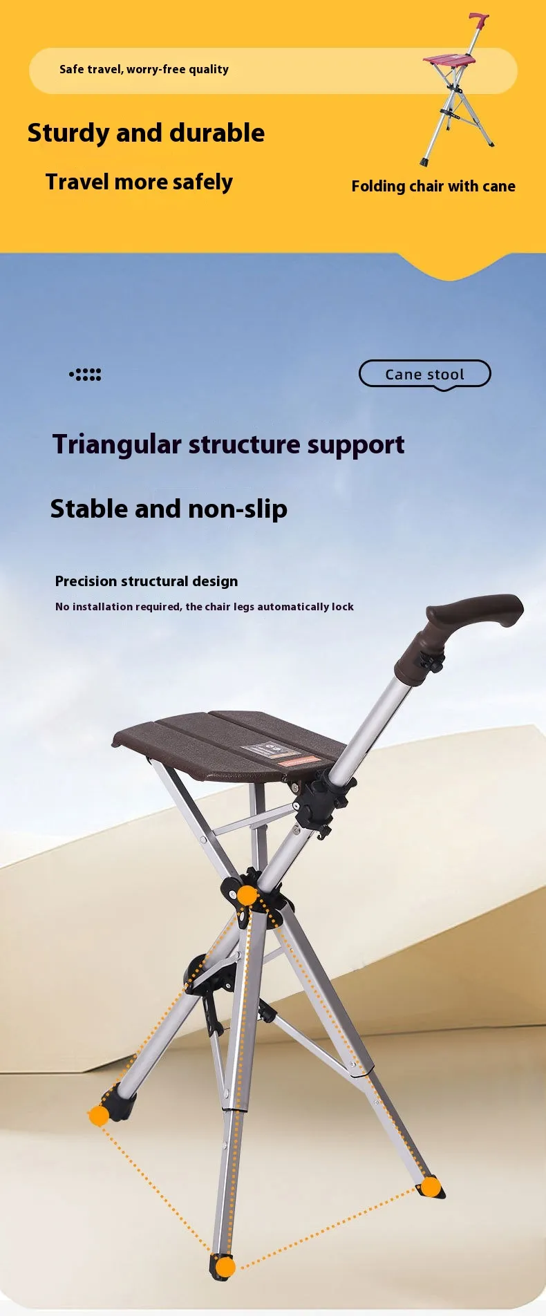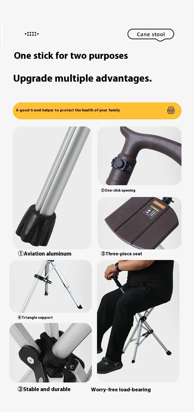 Perfect for individuals needing mobility assistance, outdoor rest support, travel convenience, and anyone who benefits from a combined walking aid and seat.
