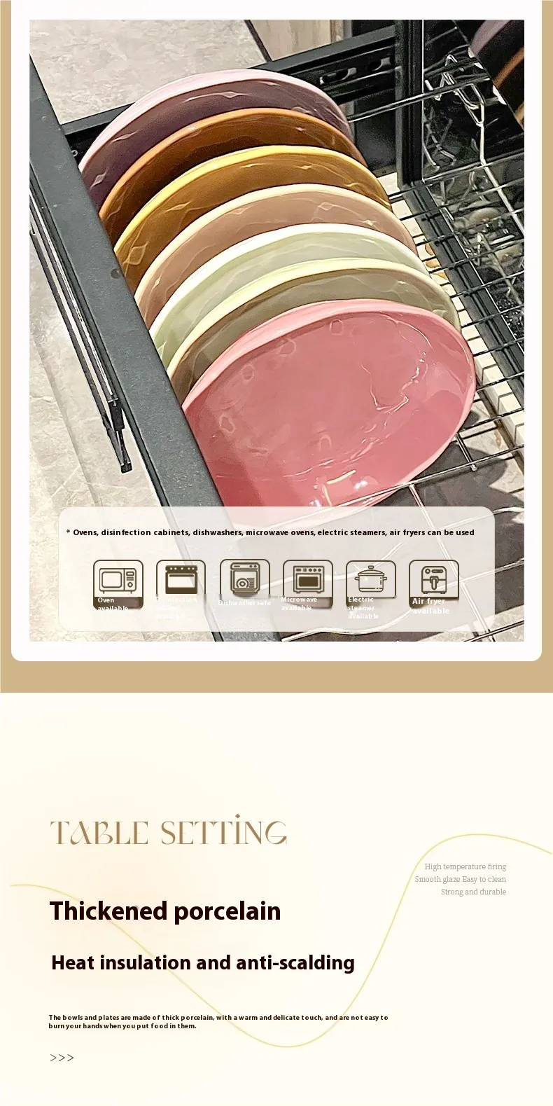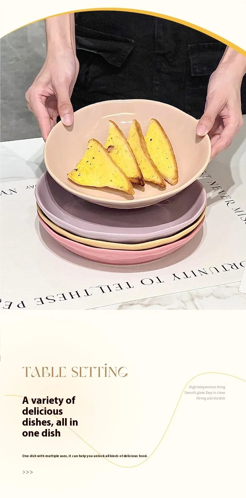 This plate is microwave, oven, and dishwasher-safe, making it convenient for heating, cooking, and cleaning. Its non-porous surface ensures that it does not absorb odors or stains.